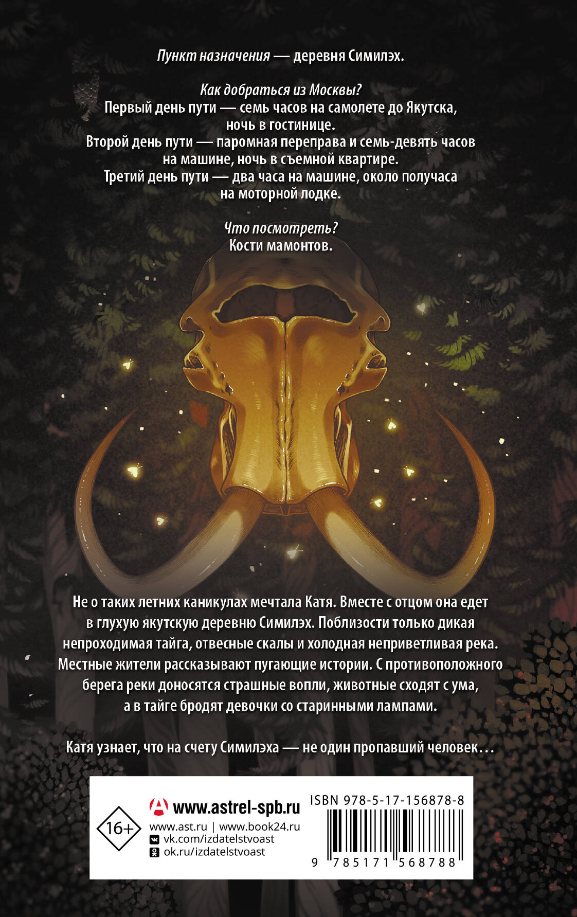 Пункт назначения - деревня Симилэх. Как добраться из Москвы? Первый день пути - семь часов на самолете до Якутска, ночь в гостинице. Второй день пути - паромная переправа и семь-девять часов на машине, ночь в съемной квартире. Третий день пути - два часа на машине, около получаса на моторной лодке. Что посмотреть? Кости мамонтов. Не о таких летних каникулах мечтала Катя. Вместе с отцом она едет в глухую якутскую деревню Симилэх. Поблизости только дикая непроходимая тайга, отвесные скалы и холодная неприветливая река. Местные жители рассказывают пугающие истории. С противоположного берега реки доносятся страшные вопли, животные сходят с ума, а в тайге бродят девочки со старинными лампами. Катя узнает, что на счету Симилэха - не один пропавший человек.| Издательство | Издательство "АСТ" |