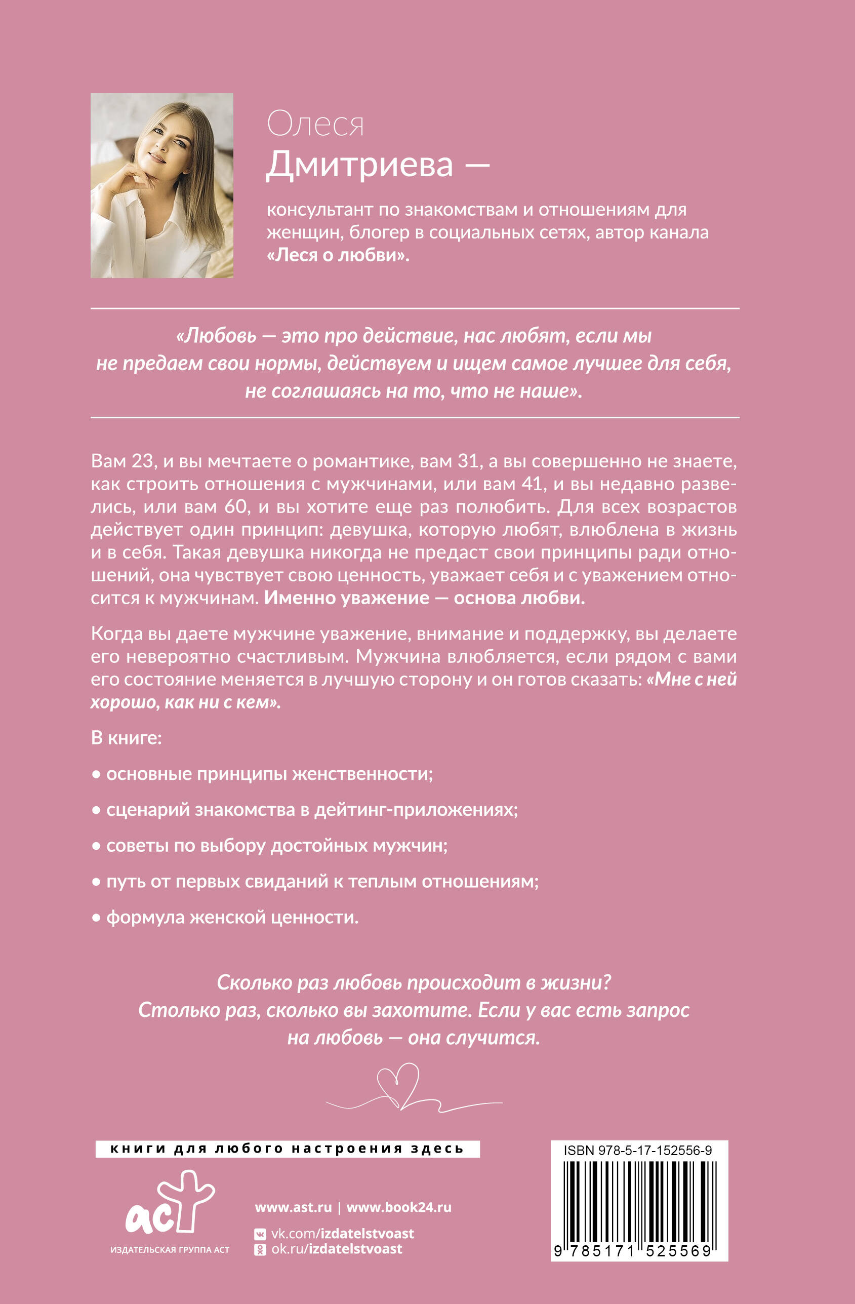 Вам 23, и вы мечтаете о романтике, вам 31, а вы совершенно не знаете, как строить отношения с мужчинами, или вам 41, и вы недавно развелись, или вам 60, и вы хотите еще раз полюбить. Для всех возрастов действует один принцип: девушка, которую любят, влюблена в жизнь и в себя. Такая девушка никогда не предает свои ценности ради отношений, она чувствует свою ценность, уважает себя и с уважением относится к мужчинам. Именно уважение - основа любви. Когда вы даете мужчине уважение, внимание и поддержку, вы делаете его невероятно счастливым. Мужчина влюбляется, если рядом с вами его состояние меняется в лучшую сторону и он готов сказать: "Мне с ней хорошо, как ни с кем". В книге "Девушка, которую любят: перейди от флирта к серьезным отношениям": • основные принципы женственности; • сценарий знакомства в дейтинг-приложениях; • советы по выбору достойных мужчин; • путь от первых свиданий к теплым отношениям; • формула женской ценности.| Издательство | Издательство "АСТ" |