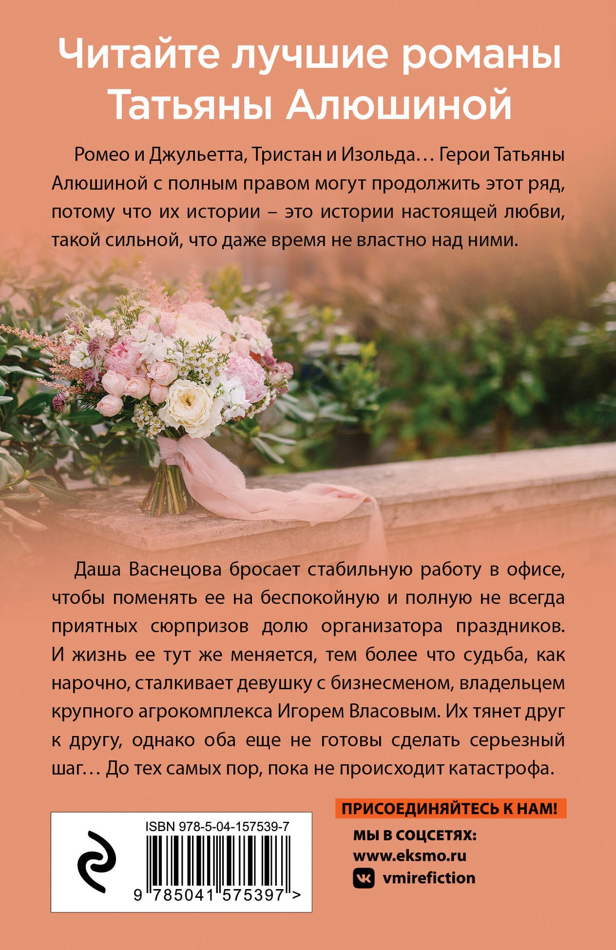 Романы Татьяны Алюшиной давно заслужили признание читательниц по всей стране, а суммарный тираж ее книг насчитывает более пяти миллионов! Захватывающие сюжеты и подлинная страсть - ее книги читаются на одном дыхании и снова помогают поверить: счастье есть! Даша Васнецова бросает стабильную работу в офисе, чтобы поменять ее на беспокойную и полную не всегда приятных сюрпризов долю организатора праздников. И жизнь ее тут же меняется, тем более что судьба, как нарочно, сталкивает девушку с бизнесменом, владельцем крупного агрокомплекса Игорем Власовым. Их тянет друг к другу, однако оба еще не готовы сделать серьезный шаг… До тех самых пор, пока не происходит катастрофа.| Издательство | ООО "Издательство "Эксмо" |