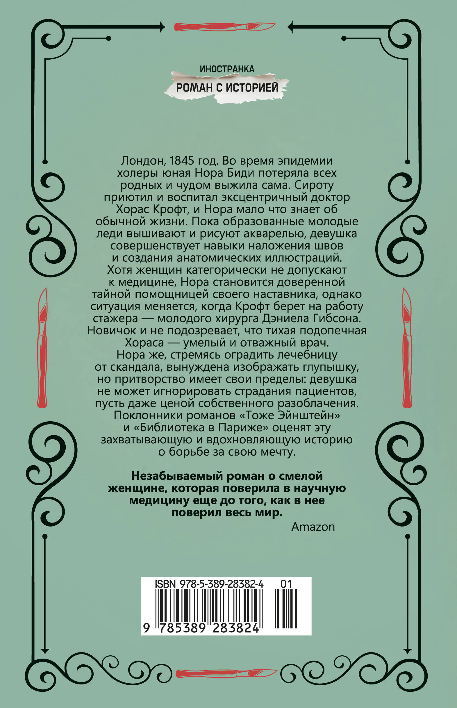 Исторический роман двух соавторов, Джаймы Фиксен и Регины Сируа, под общим псевдонимом Одри Блейк представляет широкую панораму развития хирургии в Лондоне Викторианской эпохи. В Англии к середине XIX века медицина по-прежнему считается скорее волшебством, чем наукой, а женщине не подобает даже произносить слова «роды» или «геморрой»... Миром хирургии безраздельно властвуют мужчины, которые считают, что дамам не место у хирургического стола и не позволено заниматься вскрытием трупов, обработкой ран и удалением опухолей. Однако способная девушка Нора Биди, юная воспитанница блестящего ученого Хораса Крофта, работает хирургом "под прикрытием" и не готова отказаться от любимого дела, даже несмотря на угрозу разоблачения со стороны молодого ассистента ее наставника. Но однажды, проведя дерзкий эксперимент, который может навсегда изменить медицину, Нора сталкивается с трудным выбором: остаться невидимкой и позволить мужчинам присвоить себе ее заслуги или отважиться выйти на свет, рискуя потерять всё. Впервые на русском, богатый исторический фон, подробности становления медицины, борьба женщины за место в мужском мире. Референсы: «Тоже Эйнштейн» Мари Бенедикт, «Библиотека в Париже» Джанет Чарльз, «Происхождение всех вещей» Элизабет Гилберт| Издательство | Издательство АЗБУКА ООО |
