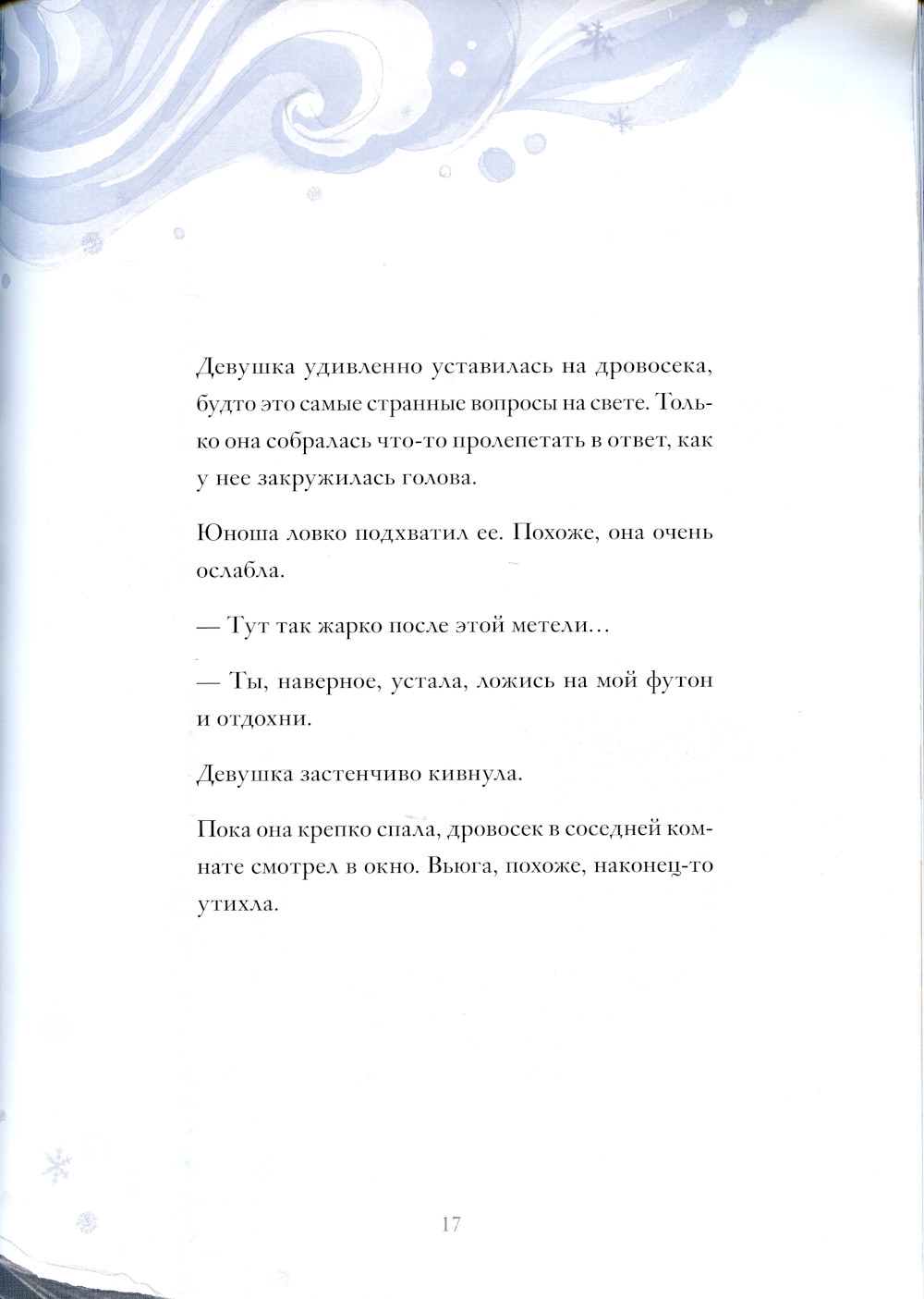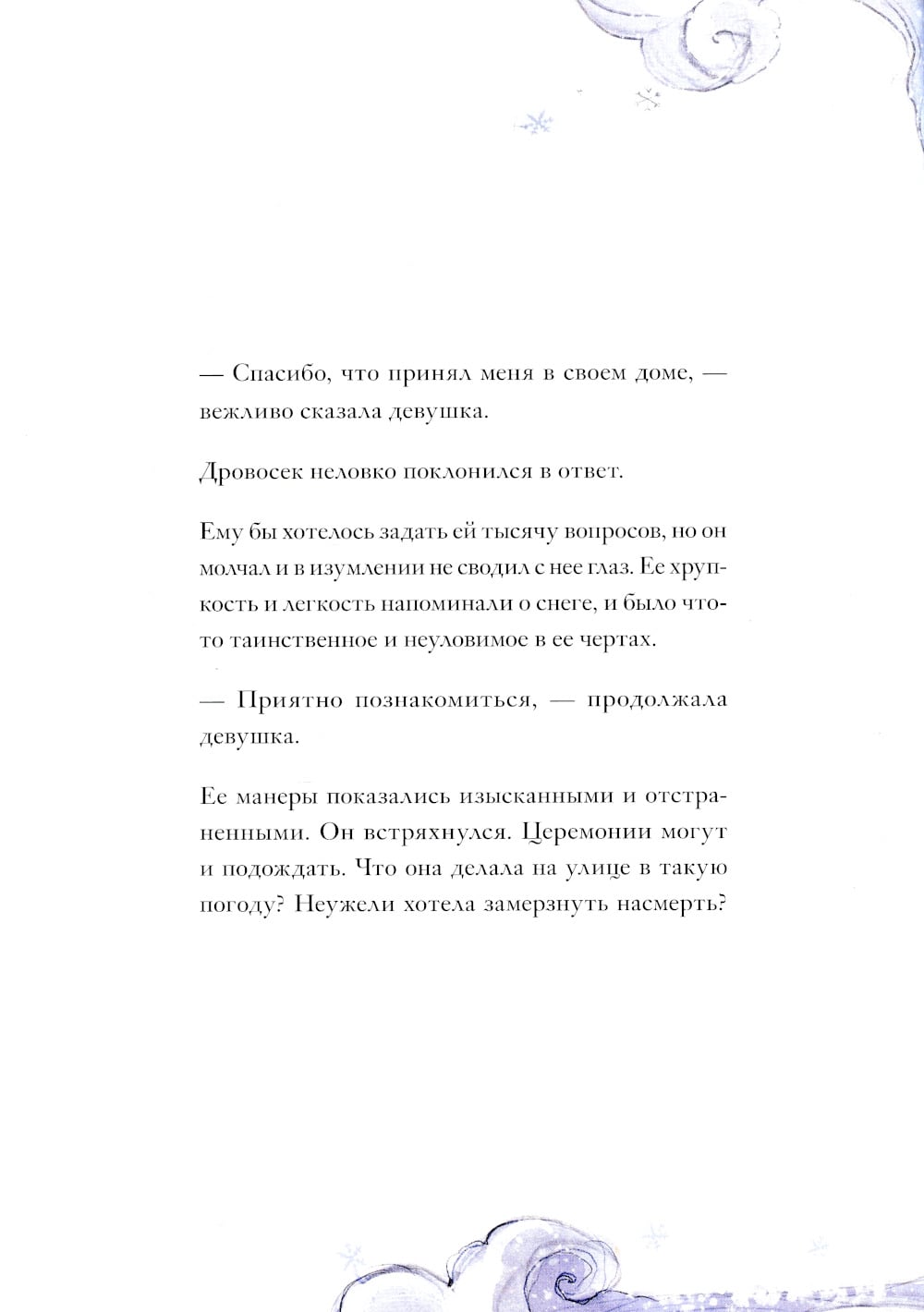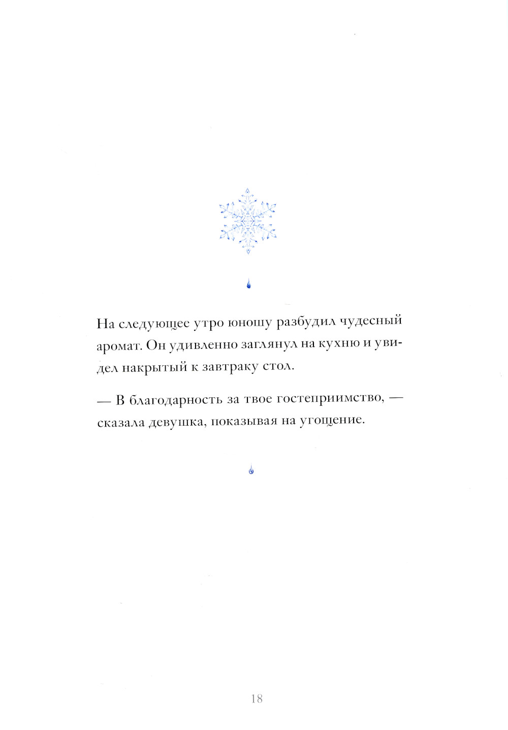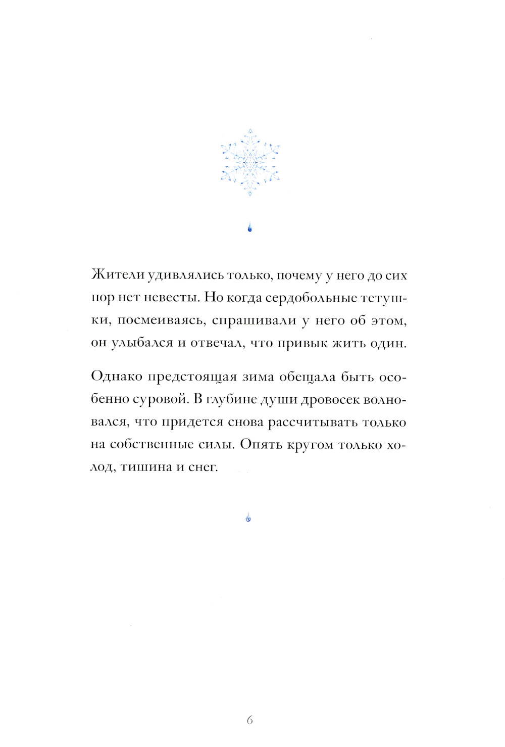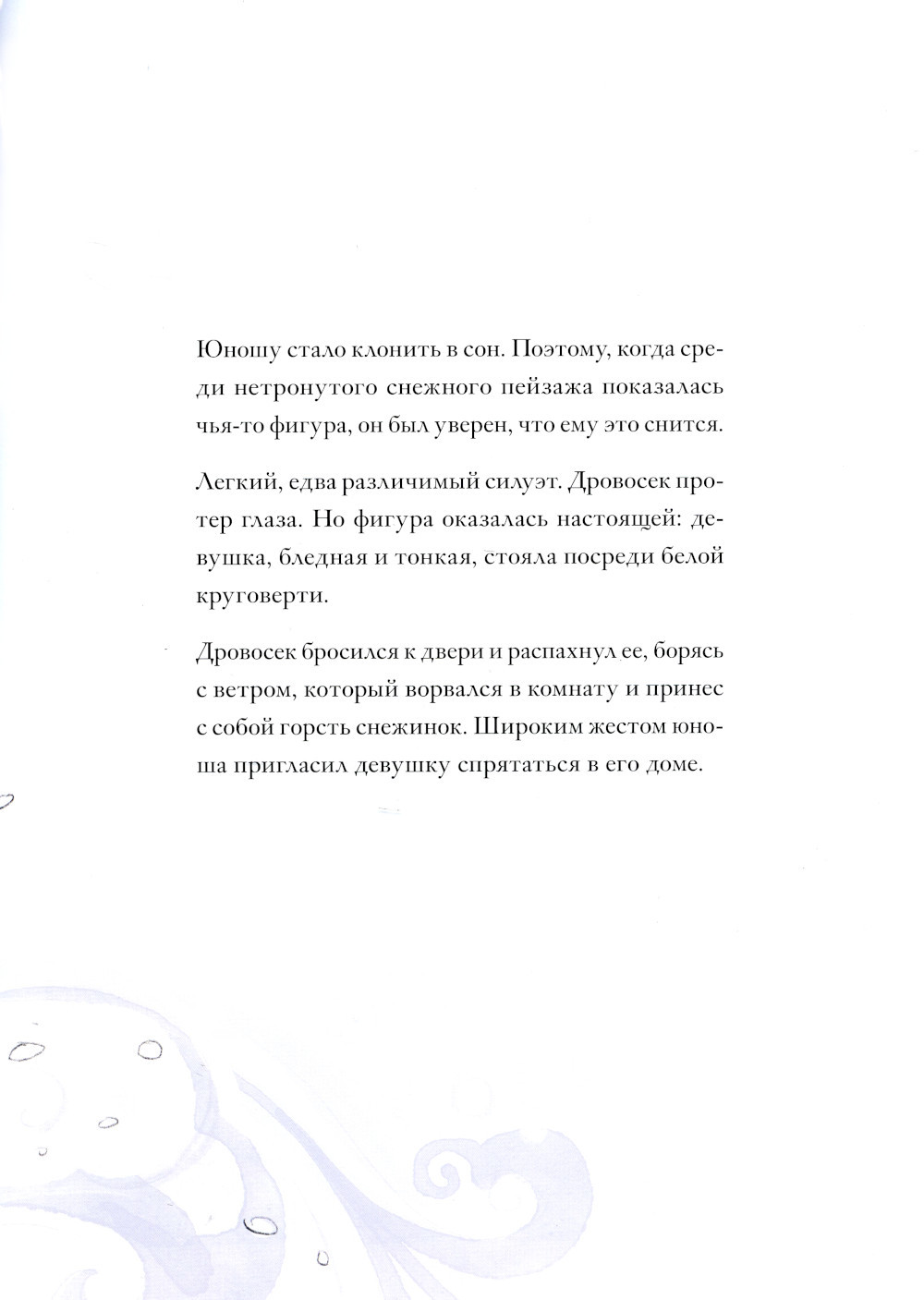 История, вдохновлённая древней японской легендой об Юки-онне. Однажды в зимнем лесу разразилась страшная буря. Дровосек, живущий один в своем маленьком домике, наблюдал за ней из окна. Вдруг он увидел на снегу легкий прозрачный силуэт красивой девушки… Сперва он решил, что это ему, конечно же, чудится. Дровосек вглядывался в снег, но видение не исчезало. Он открыл дверь и впустил гостью в свой дом спрятаться от бури. Кем окажется прекрасная незнакомка? И что влечет за собой эта встреча для дровосека? Удивительная, тонкая и красивейшая история о любви человека и духа снега.| Издательство | Манн, Иванов и Фербер |