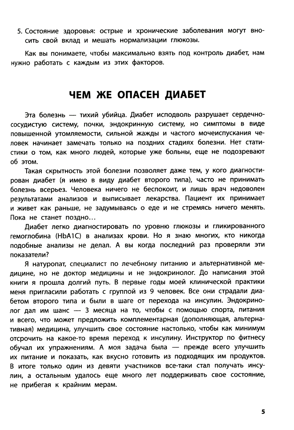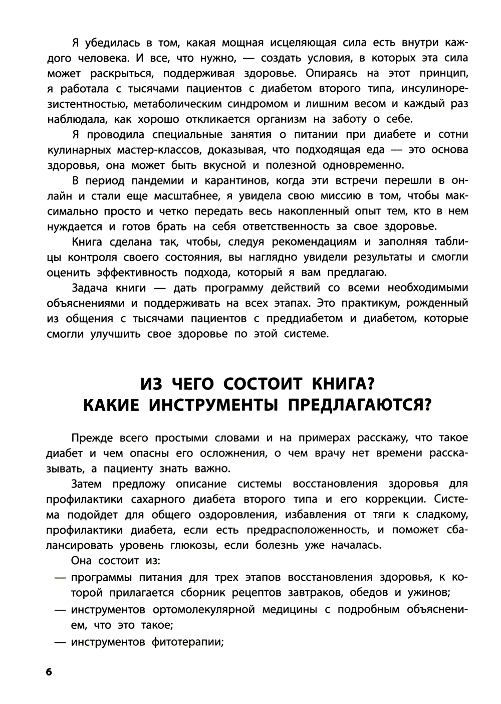 Книга предлагает четкую пошаговую программу нормализации уровня глюкозы в крови из трех последовательных этапов. Она будет полезна тем, у кого есть наследственные риски развития диабета второго типа, ухудшились показатели в анализах крови и даже если диабет второго типа - диагноз, поставленный давно.