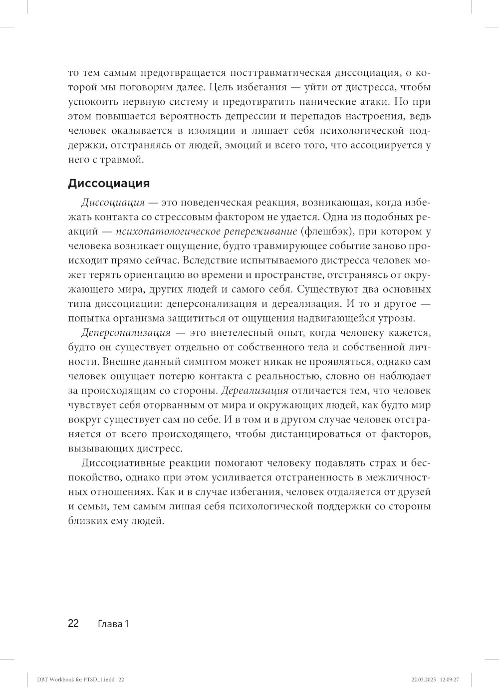 В данной книге читатель познакомиться с основами диалектической поведенческой терапии (ДПТ), поймет, как справляться с тревожными мыслями, и освоит навыки преодоления стресса. Здесь описано, что такое ПТСР и каковы симптомы этого расстройства, после чего изложены базовые принципы ДПТ: осознанность, стрессоустойчивость, эмоциональная саморегуляция и межличностная эффективность. Читатель научится бороться с последствиями психологических травм, освоив множество полезных навыков, таких как отказ от оценочной лексики, поиск здоровых способов отвлечения внимания и т.п. Каждая глава книги служит продолжением предыдущей, благодаря чему закрепляется понимание принципов ДПТ и появляется возможность увидеть, как изучаемые стратегии реализуются на практике. Чтобы побороть ПТСР, требуется время. Проявите самосострадание, воспользуйтесь предложенной терапевтической методикой, и вы снова вернетесь к нормальной жизни. В данной книге вы познакомитесь с основами диалектической поведенческой терапии (ДПТ), поймете, как справляться с тревожными мыслями, и освоите навыки преодоления стресса.| Издательство | Диалектика |