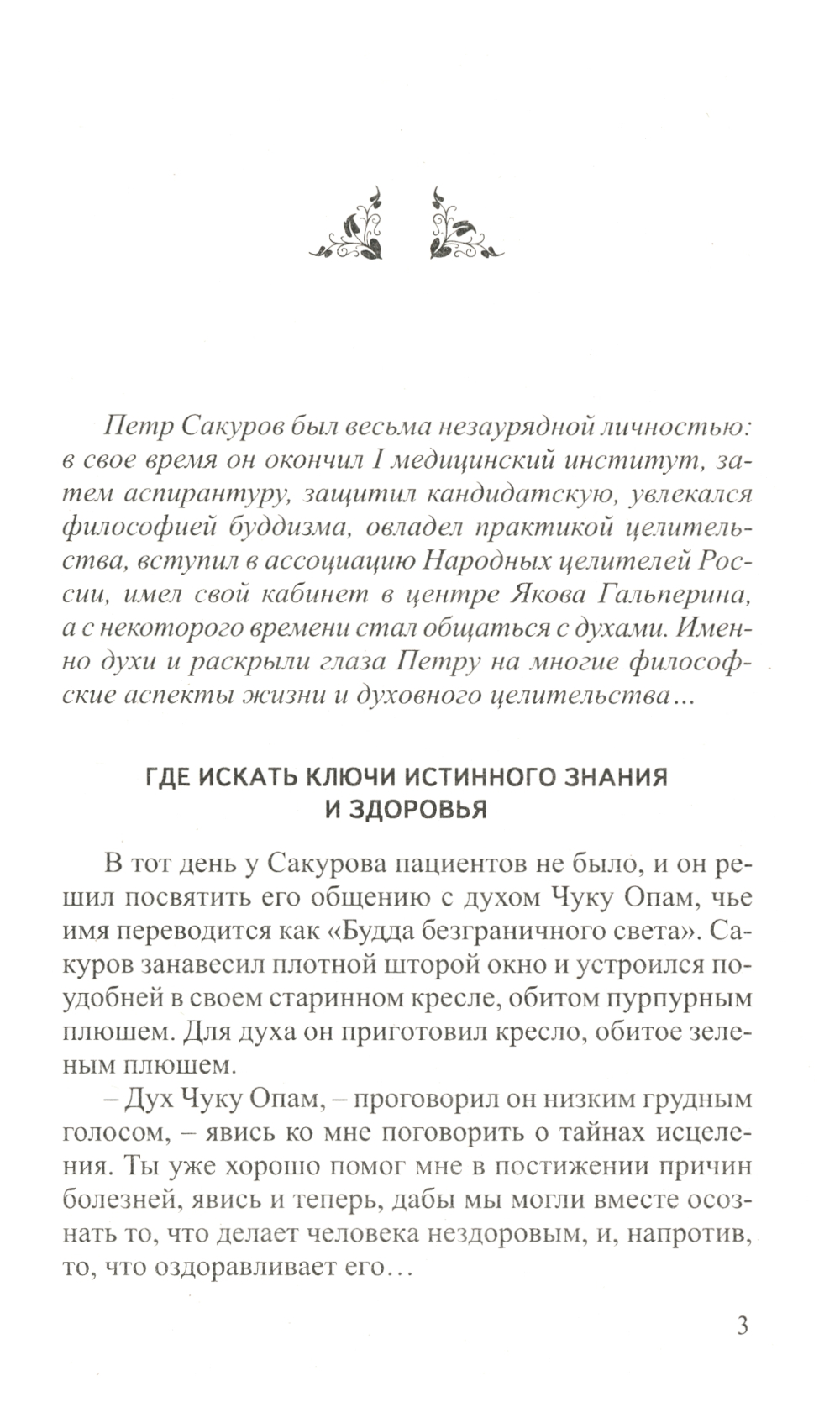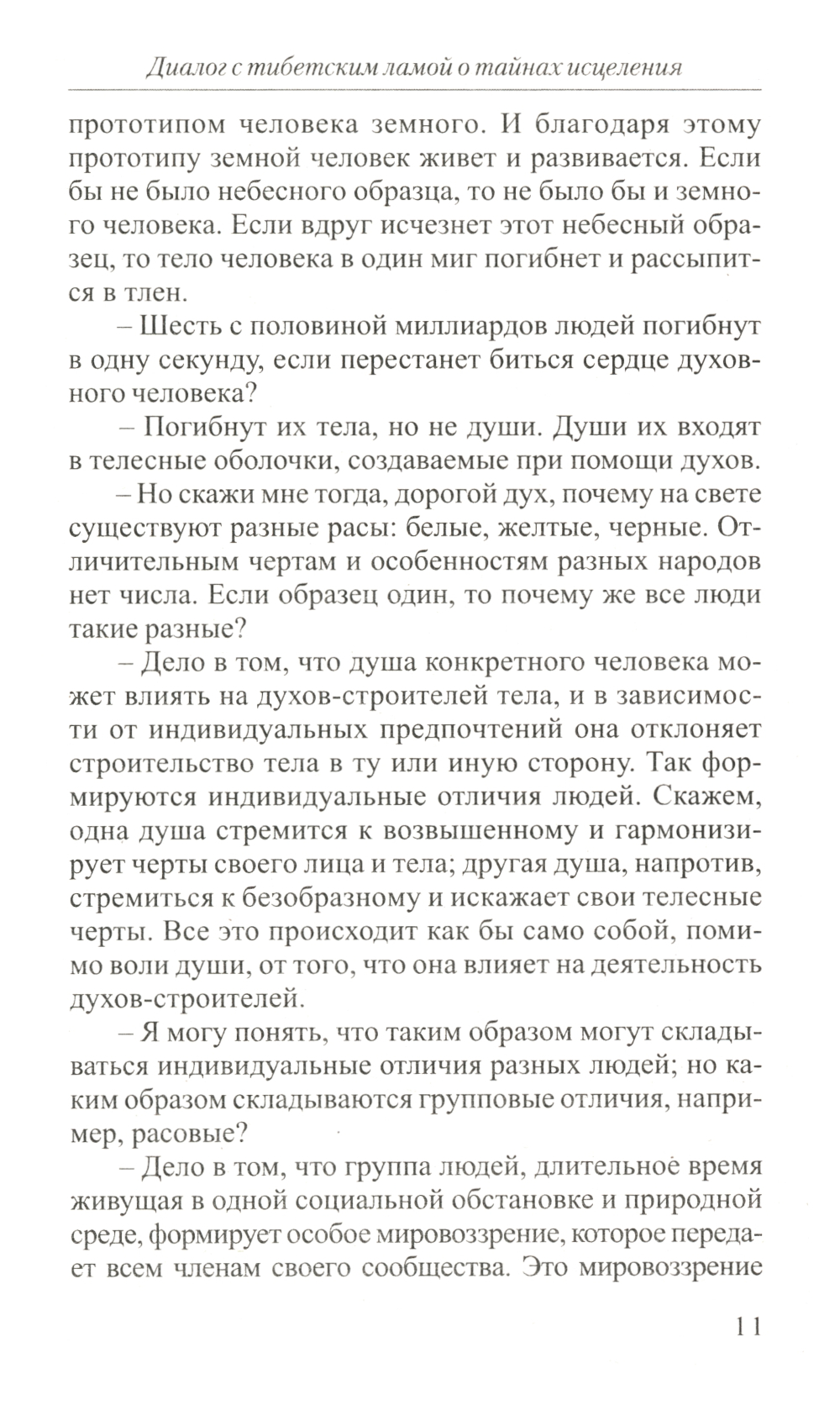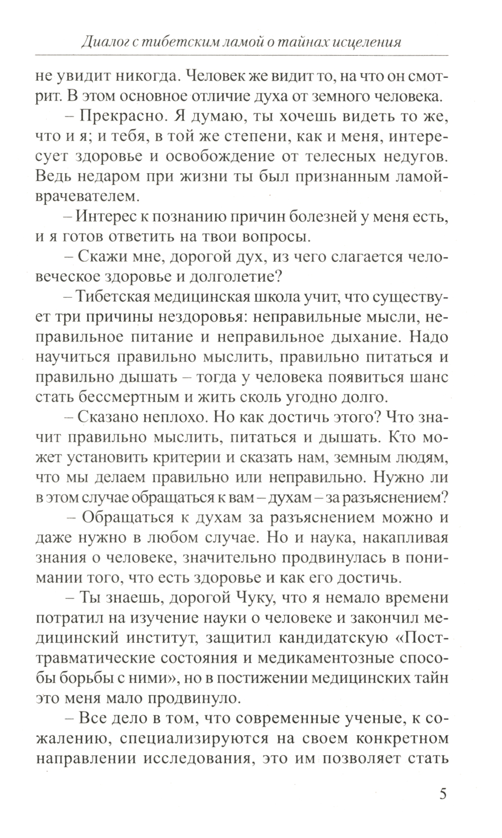 В этой книге врач ведет разговор с духовным существом - духом тибетского ламы, который дает врачу наставления. Вместе они приходят к пониманию того, что здоровье бесполезно искать только лишь на Земле, воздействуя на тело лекарствами и процедурами. Здоровье заключается в понимании единства мира, единства духовного и земного человека. Духовные существа, обеспечивающие взаимодействие души и тела, оздоравливают организм, как только человек приходит к пониманию законов, управляющих и телом, и душой.
