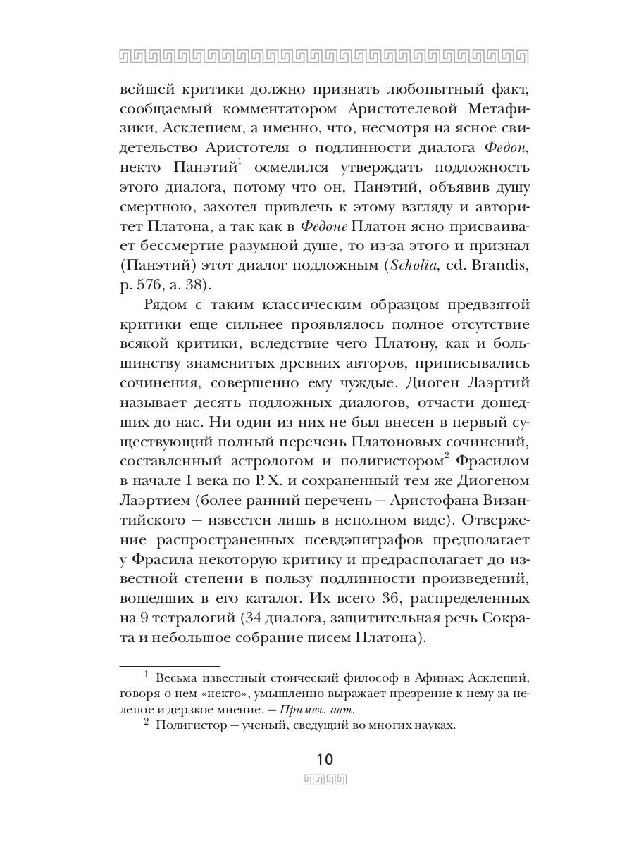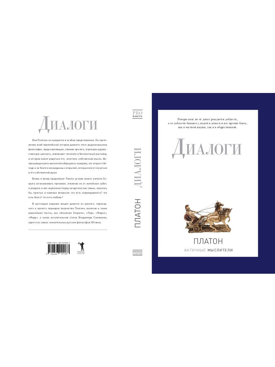 Имя Платона не нуждается в особом представлении. На протяжении всей европейской истории диалоги этого родоначальника философии, представляющие, помимо прочего, огромную художественную ценность, вовлекают читателя в бесконечный разговор, в котором может родиться его, читателя, собственная мысль. Вопрошающая речь мыслителя обращена к каждому, кто открыт к беседе и не боится неожиданных открытий, которые могут случиться в его собственной душе. Вновь и вновь продолжает Платон устами своего учителя Сократа останавливать прохожих, отвлекая их от житейских забот, и рождать в них изумление перед загадочностью самых, казалось бы, простых и наивных вопросов: что есть справедливость? что есть благо? что есть любовь? В настоящее издание входят диалоги из раннего, переходного и зрелого периодов творчества Платона, включая и такие важнейшие тексты, как «Апология Сократа», «Пир», «Федон», «Федр», а также вступительная статья Владимира Соловьева, одного из самых значительных русских философов XIX века.| Издательство | Рипол Классик |