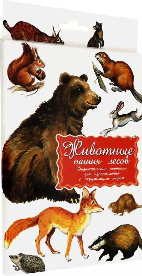 Знакомимся с медведем, соболем, белкой, оленем, ежом, лисой, ондатрой, бобром, волком, куницей, кабаном, рысью, барсуком, зайцем, лосем, россомахой. В комплекте 16 карточек. Разглядывая карточки, играя с ними, ваш ребенок не только обогатит свой багаж знаний об окружающем мире, но и научится составлять предложения, беседовать по картинкам, классифицировать и систематизировать предметы. Кроме того, с подобными карточками можно придумать множество интереснейших игр! Именно такие карточки можно рекомендовать родителям для познавательных игр с детьми и занятий по методике Глена Домана. Размер карточек 25х15 см.