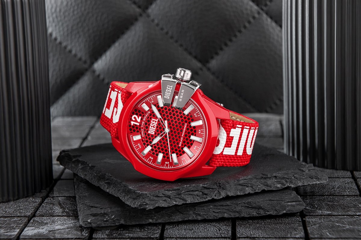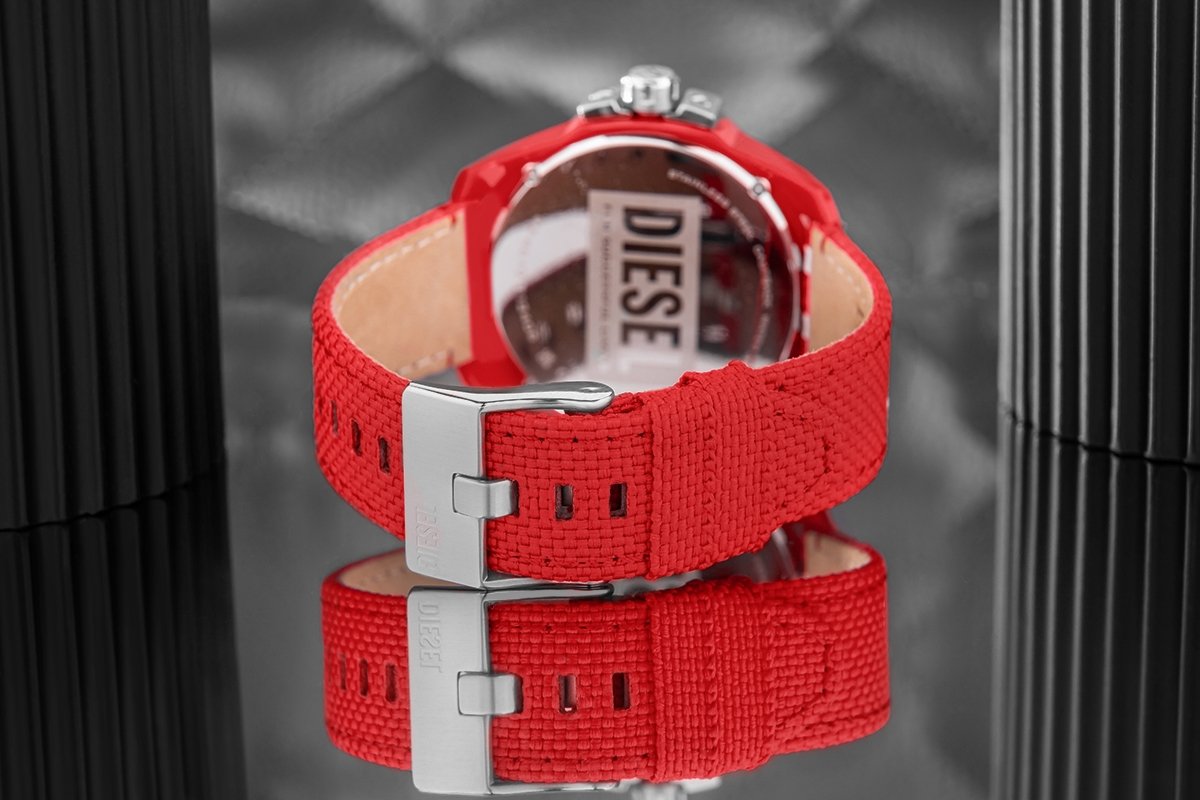 • Ремешок: красный с белым логотипом и красной прострочкой
