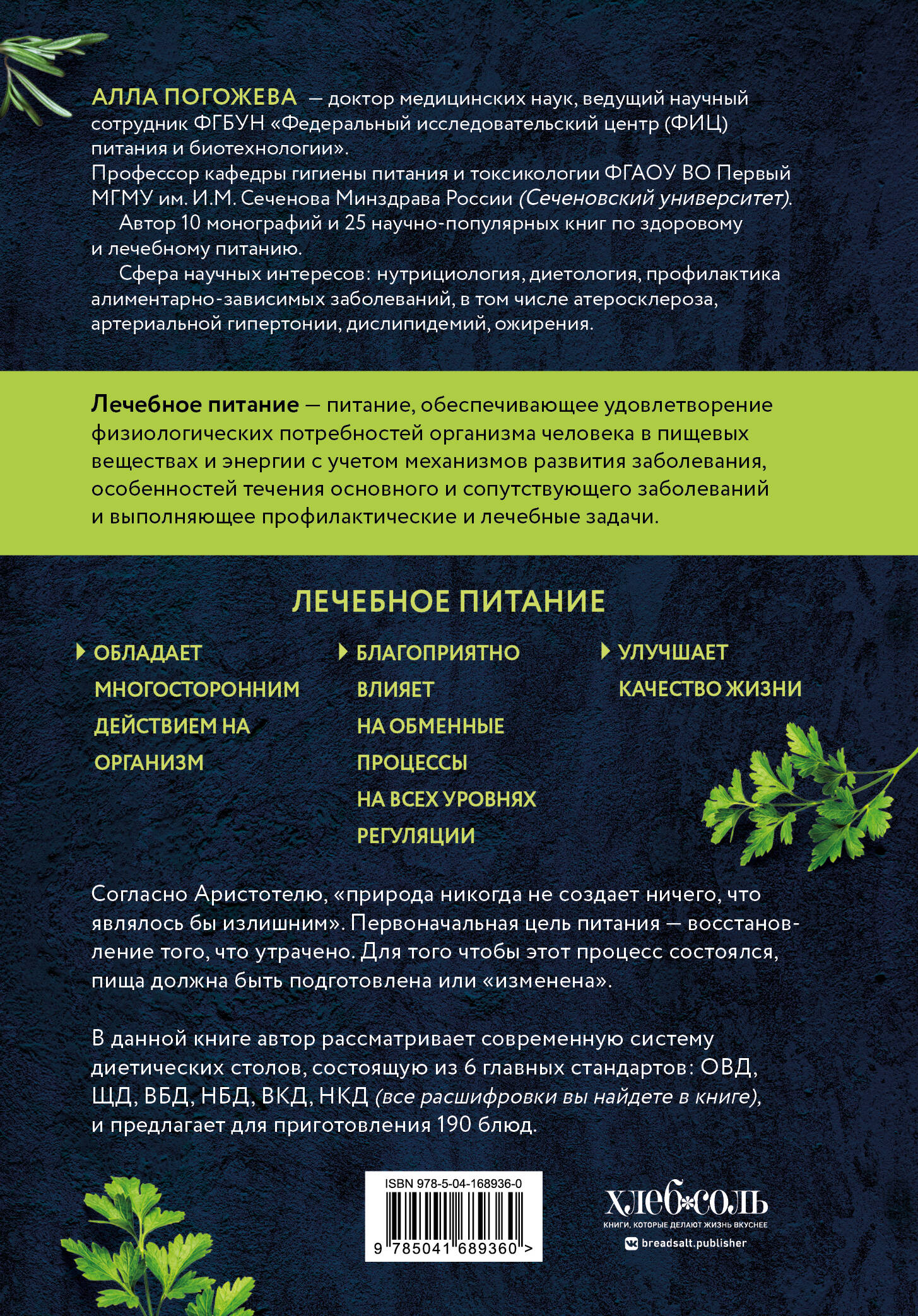 Алла Погожева ─ доктор медицинских наук, ведущий научный сотрудник ФГБУН «Федерального исследовательского центра (ФИЦ) питания и биотехнологии». Профессор кафедры гигиены питания и токсикологии ВПО Первый МГМУ им. И.М.Сеченова (Сеченовский университет). Автор 10 монографий и 25 научно-популярных книг по здоровому и лечебному питанию. Она принимает участие в российских и международных форумах и конференциях, и ее экспертное мнение очень важно в таких книгах, как эта. Ценностью данной книги являются те 190 рецептов, которые рекомендованы НИИ питания, и блюда, по которым готовят в лечебных учреждениях по всей стране. Теперь вы сможете использовать эти рецепты у себя дома при лечении некоторых болезней и для их профилактики.| Издательство | ООО "Издательство "Эксмо" |