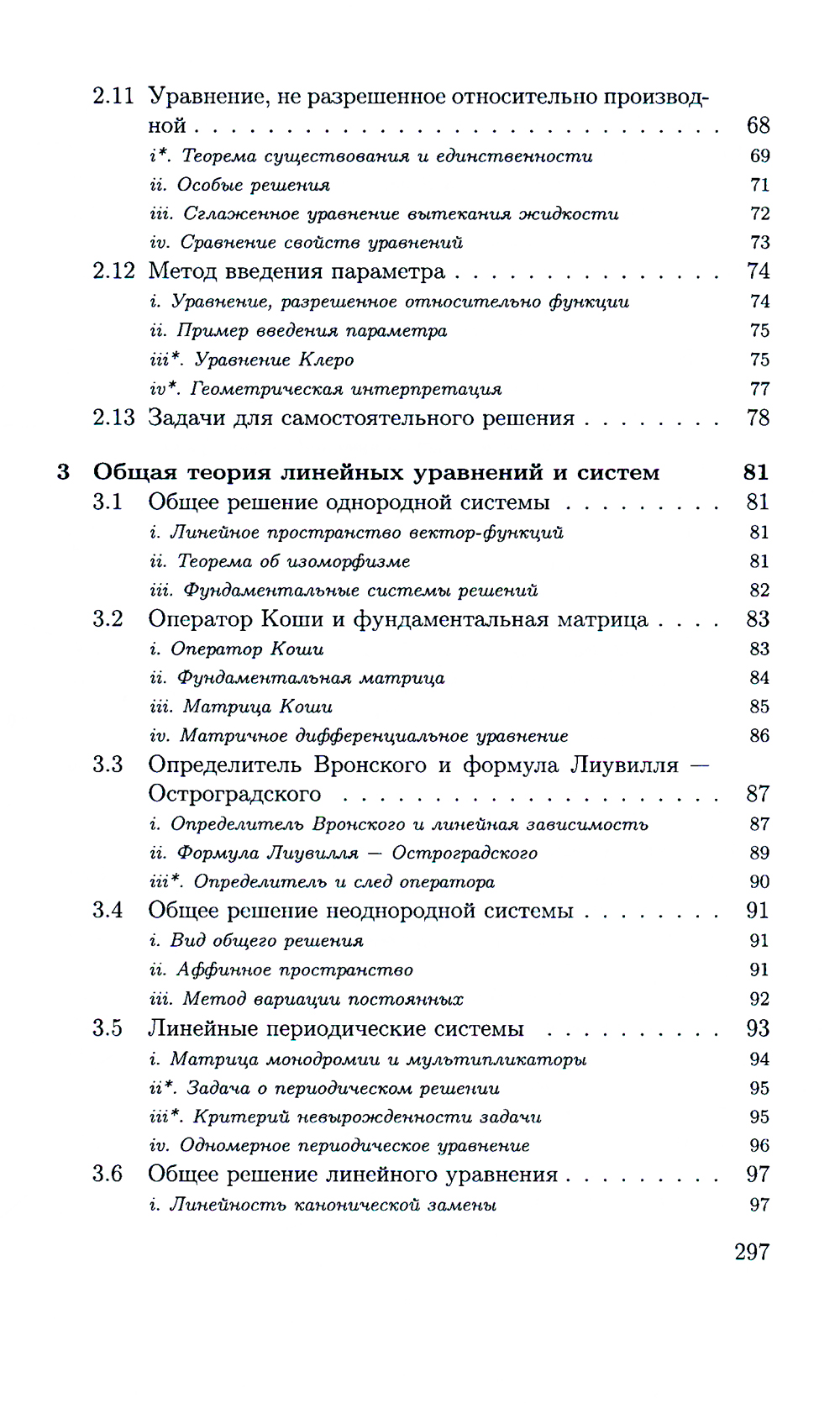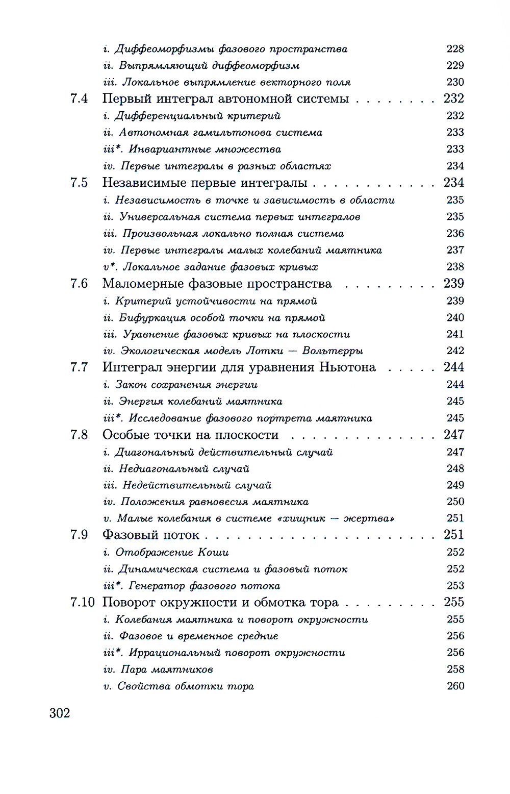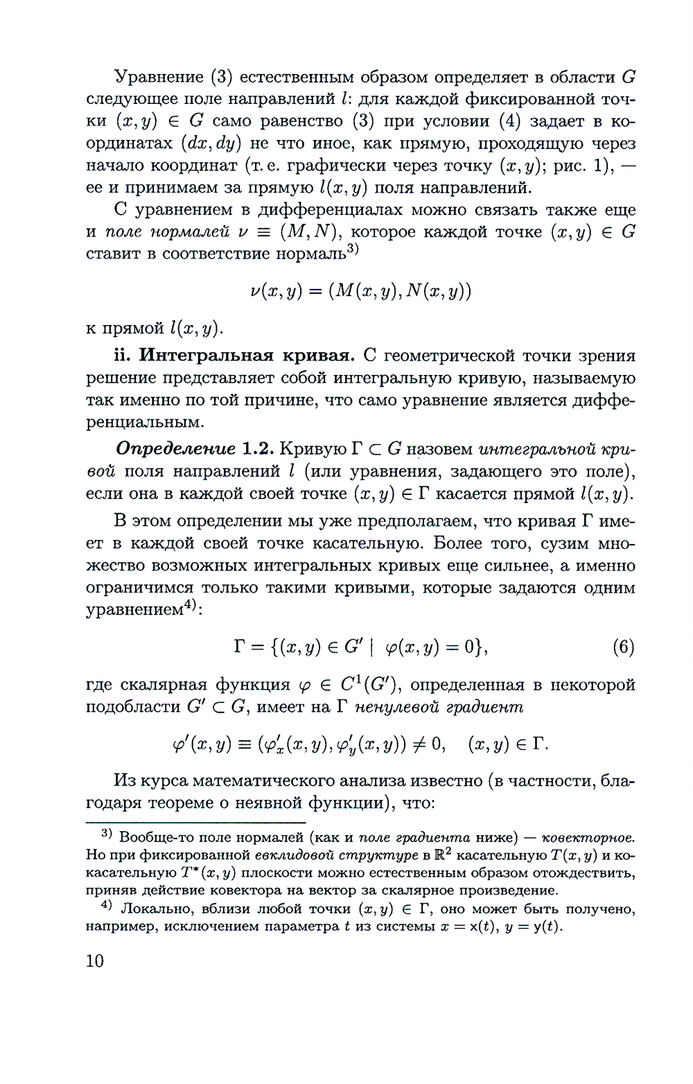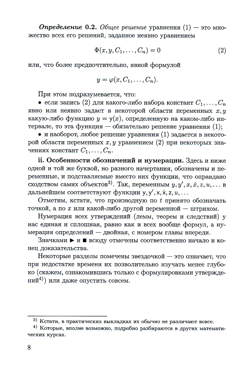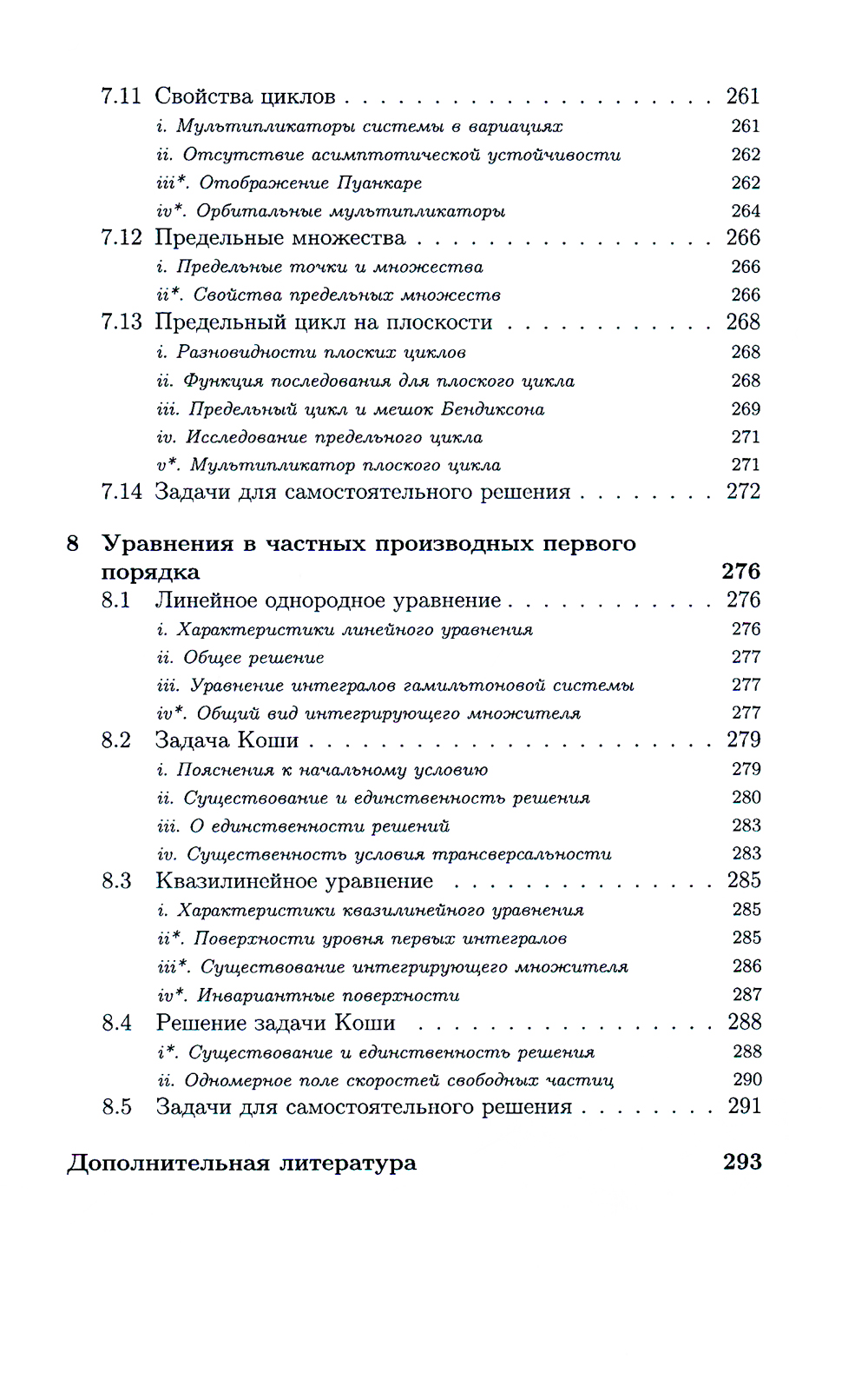 Представлен подробный конспект обязательного курса обыкновенных дифференциальных уравнений, на протяжении многих лет читавшегося автором для студентов механико-математического факультета МГУ имени М. В.Ломоносова. Учебник знакомит читателей с геометрической интерпретацией уравнения первого порядка, с первыми интегралами, особыми точками и предельными циклами автономных систем, с теорией линейных уравнений и систем, в том числе с постоянными и периодическими коэффициентами, с вопросами существования, единственности и продолжаемости решений, их непрерывности и дифференцируемости по параметру, устойчивости по Ляпунову, а также с вопросами существования и единственности решения задачи Коши для уравнения с частными производными первого порядка. Даны точные определения, аккуратно сформулированы и доказаны утверждения, строго обоснованы наиболее важные методы решения задач. Приведены все необходимые теоретические сведения, сопутствующие понятия и факты из смежных разделов математики. Предложены задачи для самостоятельного решения, позволяющие глубже проникнуть в прочитанный материал. Для студентов и аспирантов, изучающих классическую теорию обыкновенных дифференциальных уравнений.