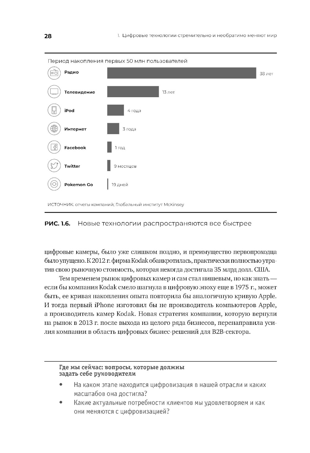 Цифровая революция вошла в свою решающую фазу - интернет использует каждый второй житель Земли. Целые отрасли претерпевают кардинальные изменения из-за появления цифровых игроков, а выживание компаний все чаще зависит от того, способны ли они переосмыслить свои бизнес-модели. Отказ признать необходимость цифровизации бизнеса чреват драматичными потерями и даже уходом с рынка. Авторы книги, старшие партнеры McKinsey - самой влиятельной консалтинговой компании в мире, отвечают на три главных вопроса: зачем, что и как необходимо сделать, чтобы ваша компания стала цифровой. Опираясь на многочисленные исследования и опыт известных международных и российских компаний, они объясняют, почему изменения нужны даже там, где сейчас и так все хорошо, что именно в действующих стратегиях требует пересмотра и, наконец, как грамотно и эффективно провести цифровизацию своего бизнеса.| Издательство | Альпина ПРО |