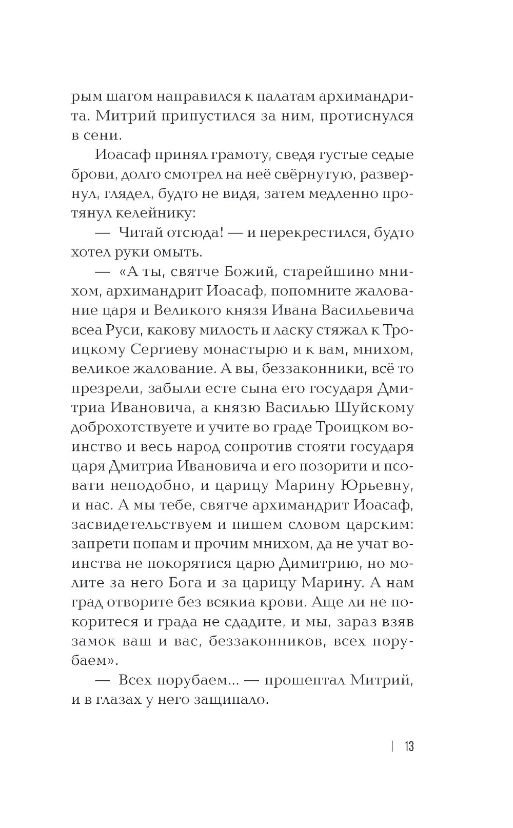 Роман-хроника «Дикая карта» основан на доку- ментальном материале и посвящён событиям Смутного времени - беспримерной шестнадцатимесячной обороне Троице-Сергиева монастыря, осаждённого войсками Лжедмитрия II, походу воеводы Давыда Жеребцова из Туруханска на помощь осаждённым и из- гнанию войск Сапеги и Лисовского из-под монастыря в 1608-1610 годах. В книге на широком историческом фоне представ- лены образы героев этих событий: настоятеля архи- мандрита Иоасафа, осадных воевод Григория Долгорукова и Алексея Голохвастого, мангазейского воеводы Давыда Жеребцова, монахов, стрельцов и крестьян, оборонявших монастырь. Для широкого круга читателей.| Издательство | АСТ |