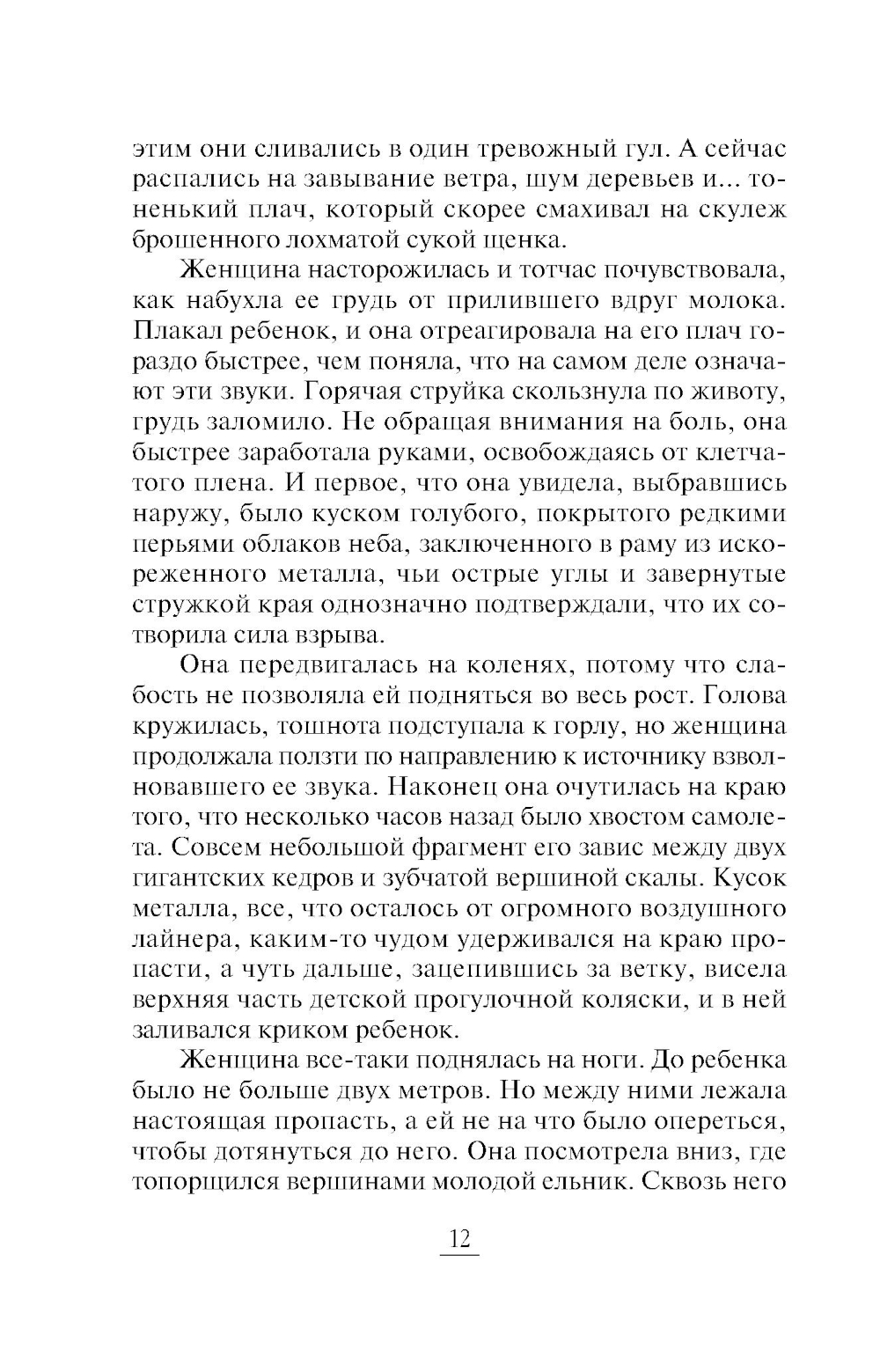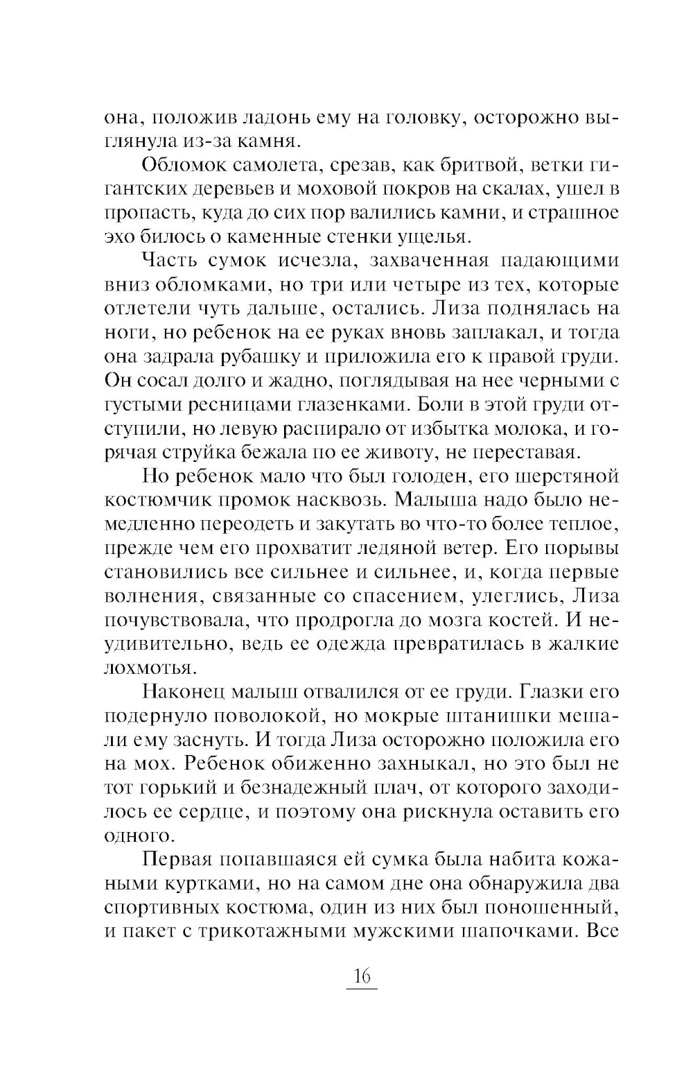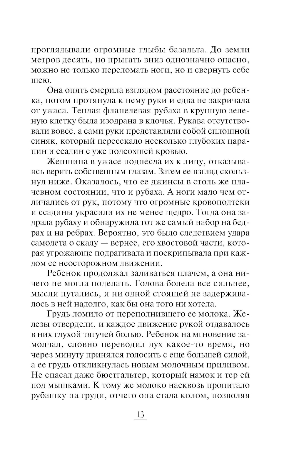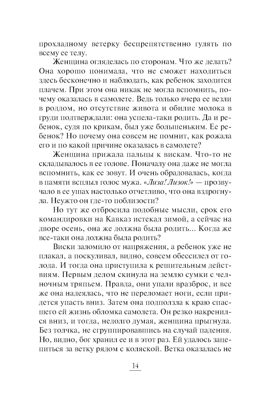 Лиза очнулась и не поняла, где она. Кругом затянутый дымом лес и обгоревшие обломки самолета… Похоже, она чудом осталась в живых после авиакатастрофы! Но куда она летела и зачем? Вспоминать было некогда: Лиза услышала детский плач. Коляска зацепилась за дерево на краю обрыва. Это же ее сын! Рискуя жизнью, Лиза спасла мальчика. Вещи, обнаруженные среди багажа упавшего самолета, помогли ей обустроить лагерь, да и опыт бойца спецназа, где она когда-то служила, чего-то стоил. Но как выбраться из глухой тайги?.. Директор крупного военного завода Морозов ждал бывшую жену с маленьким сыном. После сообщения о гибели самолета надежда оставалась только на спасателей. И она оправдалась: в тайге была обнаружена женщина с маленьким ребенком. Когда Лизу доставили в город, Морозов убедился: она спасла его сына, которого считает своим. Мужчина принял решение взять ее к себе в дом, конечно, только ради ребенка. Он продолжал упорно верить в этот самообман…| Издательство | Эксмо |