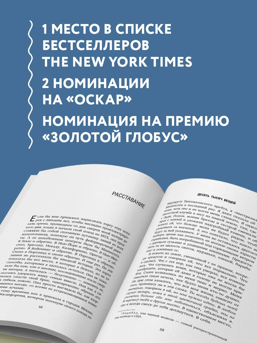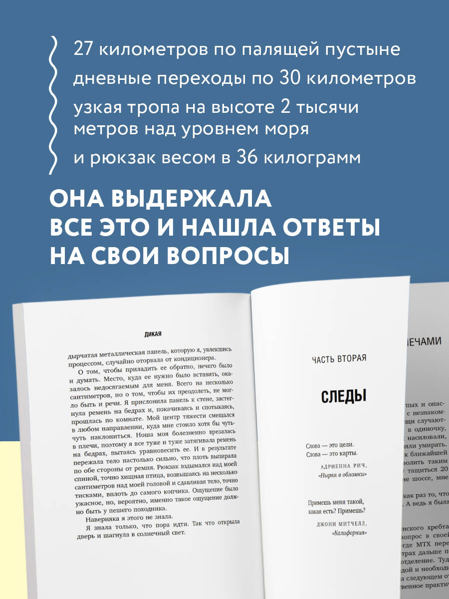Когда жизнь становится черно-белой, когда нечего терять, нет ни цели, ни будущего, ни желания жить, люди порой решаются на отчаянные поступки. Потеряв мать, разрушив свой брак, Шерил дошла до той черты, за которой зияла бездна. Ей нужна была веская причина, чтобы начать новую жизнь, перестать заниматься саморазрушением и попытаться спасти себя. И она в одиночку отправилась в пешее путешествие длиной 1770 км. Поход Шерил был не только трудным, но и опасным. Ей пришлось пройти 27 километров по палящей пустыне лишь с небольшим запасом воды, совершить несколько дневных переходов длиной в 30 километров, пройти по узкой тропе, расположенной выше 2 тысяч метров над уровнем моря, взобраться на заснеженную гору с рюкзаком, весящим 36 килограмм. Но что было сложнее - выдержать тяжелейшие условия или найти ответы на свои вопросы? Откровенный и эмоциональный рассказ женщины, преодолевшей себя, вдохновляет на наведение порядка в собственной жизни. Чтобы прийти к себе, не обязательно отправляться в путешествие, иногда достаточно лишь взглянуть со стороны на то, как это уже кто-то сделал. Полное опасностей приключение, позволило Шерил кардинально изменить свою жизнь, обрести душевное равновесие и гармонию.| Издательство | ООО "Издательство "Эксмо" |