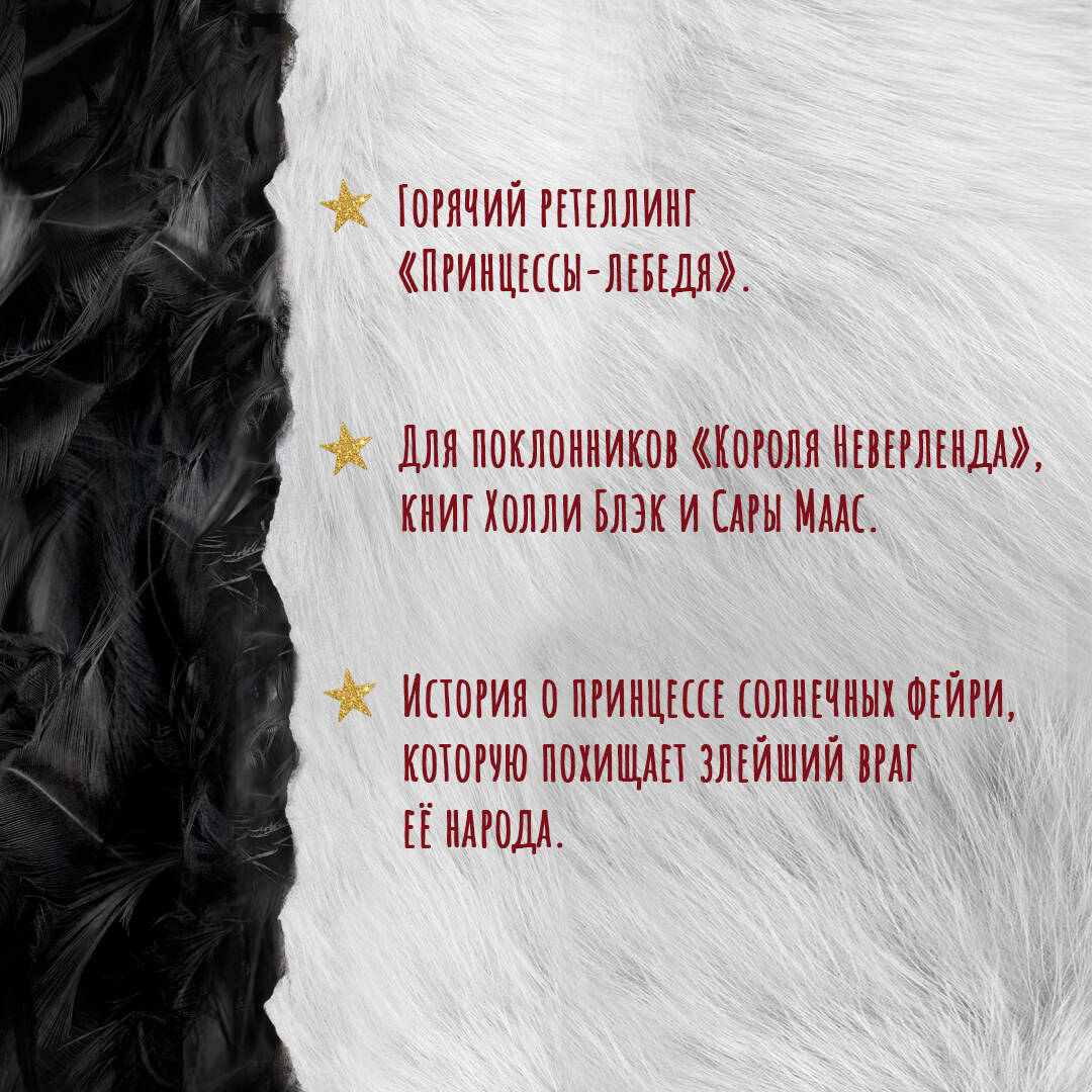 Опал - принцесса солнечных фейри. Она делала всё возможное, чтобы помочь своему народу в борьбе со злейшими врагами, багровыми фейри. Но её родители выбрали для неё будущее, с которым она не хотела мириться: брак с человеком. Убегая из замка, чтобы найти утешение в одиночестве, Опал не подозревала, что столкнётся с судьбой, которой все отчаянно надеялись избежать. Её нашёл король волков - скорее зверь, нежели человек; скорее тиран, чем справедливый правитель. Но когда Опал осознала, кто он, было уже слишком поздно. Теперь она принадлежит багровому властителю, который должен быть уничтожен ради спасения солнечного народа. Даже если сердце Опал разобьётся в миг, как его сердце остановится… Страстная история любви, вдохновлённая легендарным мультфильмом «Принцесса-лебедь», сказкой Братьев Гримм «Румпельштильцхен» и мифом об Аиде и Персефоне. Ретеллинг от популярного на Западе автора для поклонников «Короля Неверленда». Понравится поклонникам Никки Сент Кроу, Сары Дж. Маас и Дженнифер Арментроут. Жаркие сцены и история на популярную тему «от ненависти до любви». Внутри - раскладная цветная вклейка с красивейшим артом с обложки.