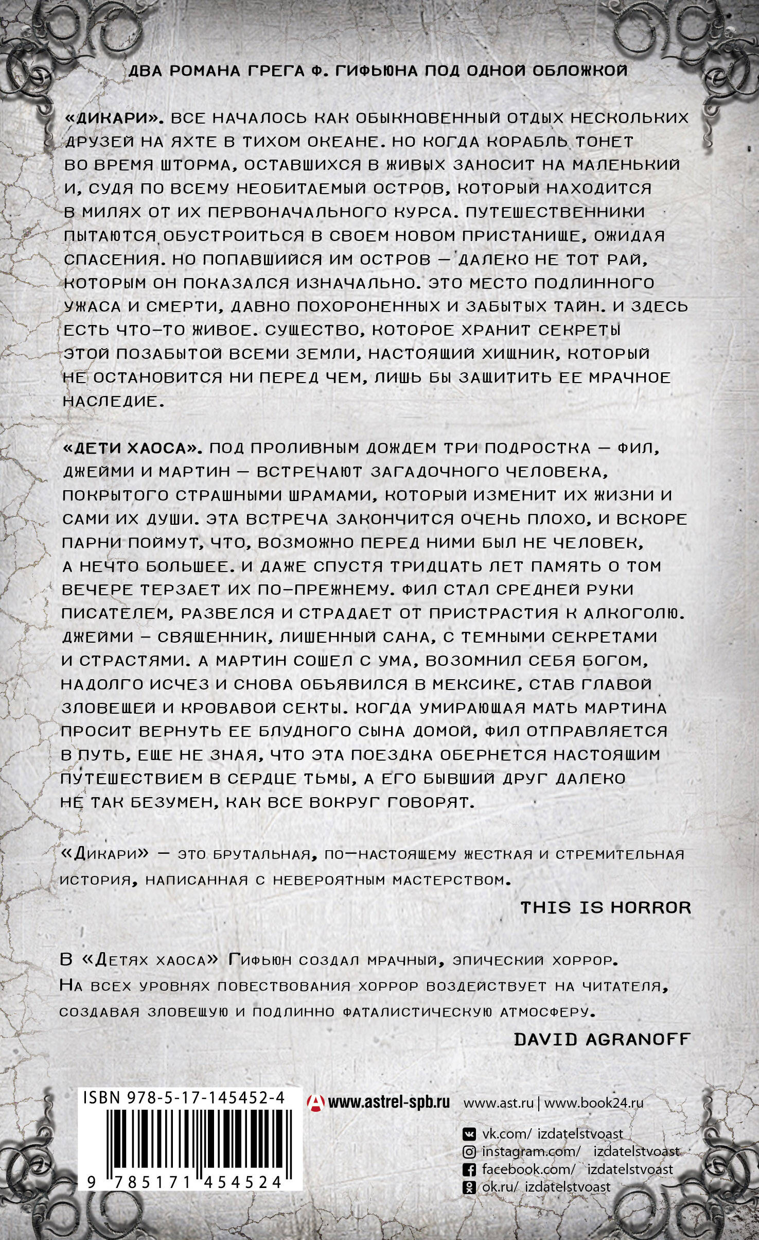 Впервые на русском! Два романа от одного из лучших мастеров ужасов современности Грега Гифьюна! Для всех поклонников Стивена Кинга, Джо Хилла и Адама Нэвилла. Два романа под одной обложкой! Брутальная, жёсткая и стремительная история и мрачный, зловещий фаталистический хоррор.| Издательство | АСТ |