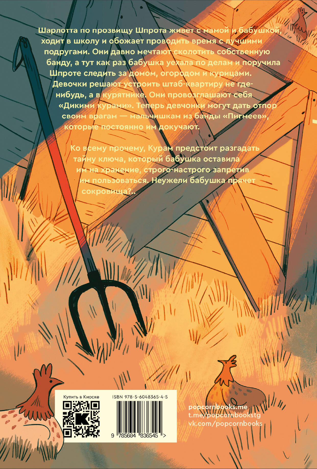 Шарлотта по прозвищу Шпрота живет с мамой и бабушкой, ходит в школу и обожает проводить время с лучшими подругами. Они давно мечтают сколотить собственную банду, а тут как раз бабушка уехала по делам и поручила Шпроте следить за домом, огородом и курицами. Девочки решают устроить штаб-квартиру не где-нибудь, а в курятнике. Они провозглашают себя «Дикими Курами». Теперь девчонки могут дать отпор своим врагам - мальчишкам из банды «Пигмеев», которые постоянно им докучают. Ко всему прочему, Курам предстоит разгадать тайну ключа, который бабушка оставила им на хранение, строго-настрого запретив им пользоваться. Неужели бабушка прячет сокровища?..