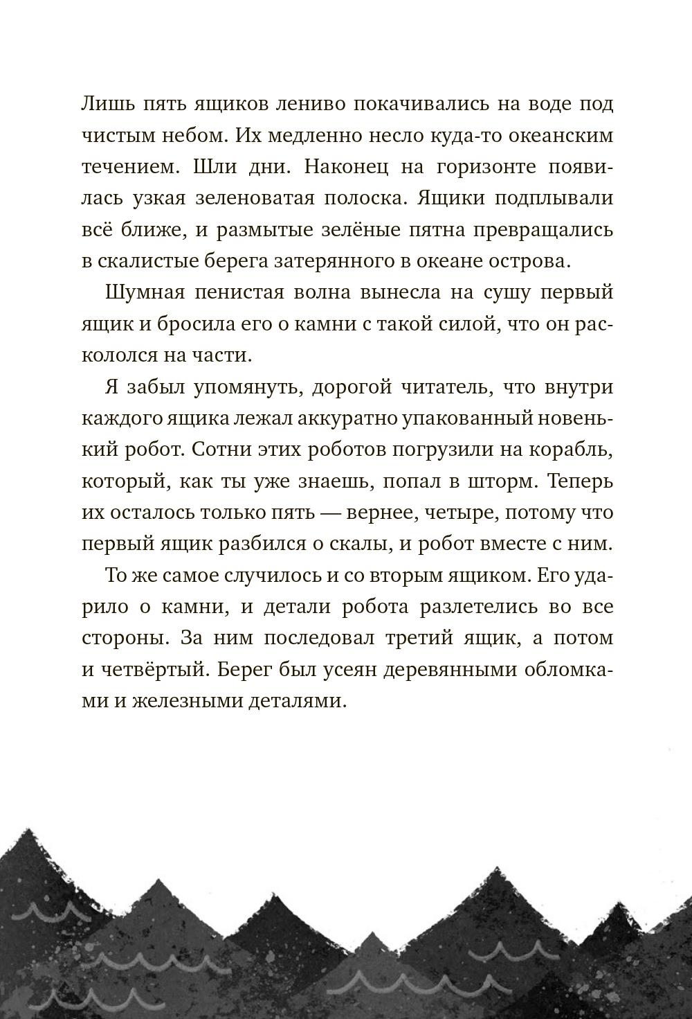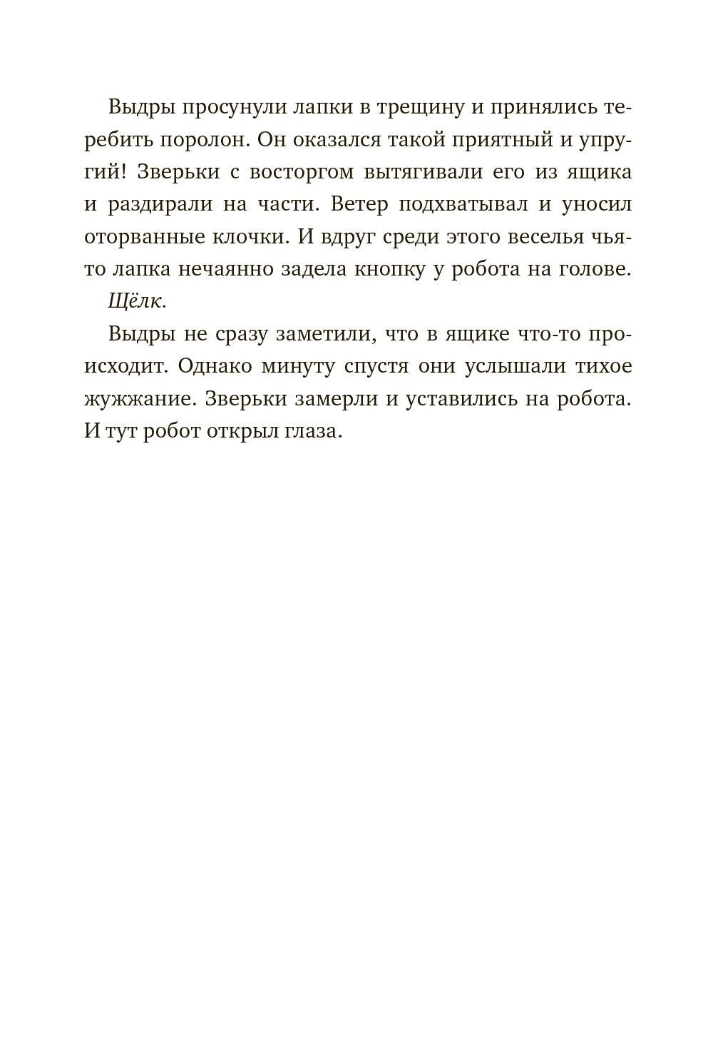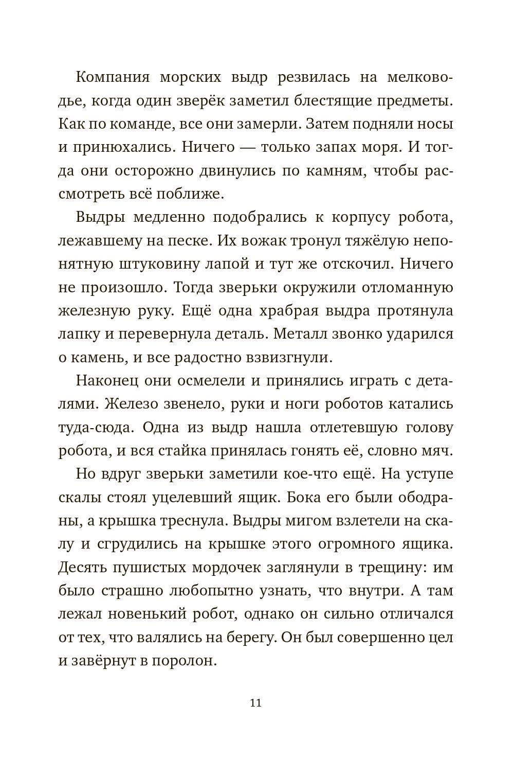Удивительная сказка про одного робота по имени Роз, попавшего на необитаемый остров. История начинается с кораблекрушения. Попавшее в шторм судно идет на дно вместе со своим грузом - многочисленными коробками, в которых аккуратно упакованы сотни роботов. Постепенно обломки прибивает волнами к затерянному в бескрайних водах острову. Все коробки разбились о прибрежные скалы, но одна из них уцелела и оказалась на берегу. Ее нашли любопытные морские выдры. Изучая коробку и играя с ней, они распаковали содержимое и... Щелк! Робот ожил. Роз открыла глаза и оглянулась вокруг. Она была на острове. Она не знала, как сюда попала, зачем она здесь и что ей делать. Но она поняла, что ей нужно научиться выживать. Роз - робот-помощник, она способна невероятно быстро обучаться, анализировать и применять свои новые навыки. Постепенно она понимает, что очень важно подружиться с местными обитателями, многочисленными и разнообразными животными. Но как это сделать, если они тебя боятся? В итоге Роз смогла выучить язык животных, найти семью и друзей, понять смысл и цель своего существования. А еще... она стала самой лучшей мамой маленькому гусенку по имени Красноклювик.| Издательство | Манн, Иванов и Фербер |
