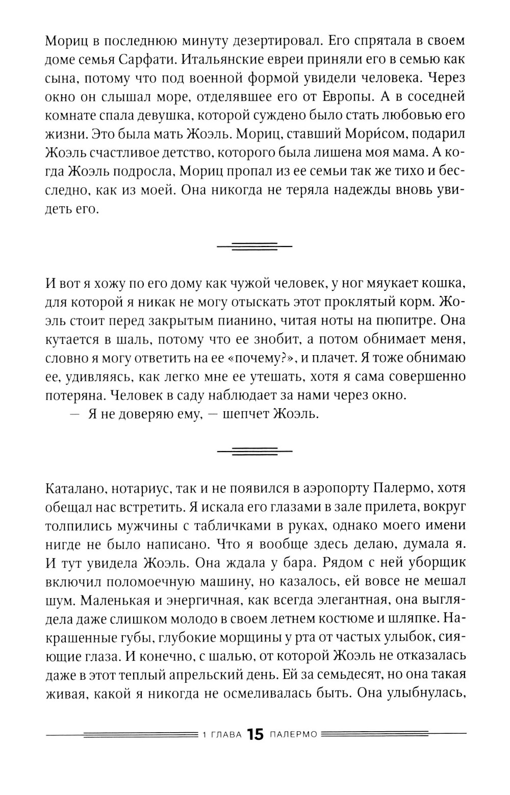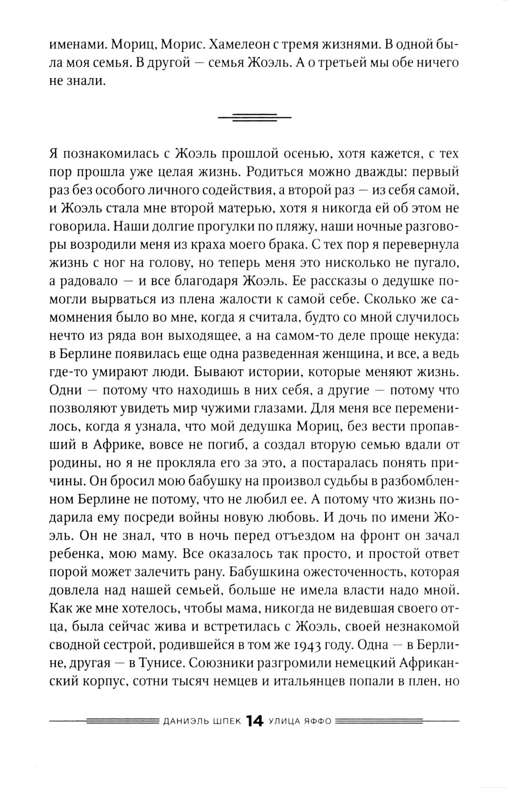 Комплект из 2 книг: «Piccola Сицилия» Наши дни. Солнечный осенний день на Сицилии. Дайверы, искатели сокровищ, пытаются поднять со дна моря старый самолет. Немецкий историк Нина находит в списке пассажиров своего деда Морица, который считался пропавшим во время Второй мировой. Это тайна, которую хранит ее семья. Вскоре Нина встречает на Сицилии странную женщину, которая утверждает, что является дочерью Морица. Но как такое возможно? Тунис, 1942 год. Пестрый квартал Piccola Сицилия, три религии уживаются тут в добрососедстве... Уживались, пока не пришла война. В отеле «Мажестик» немецкий военный фотограф Мориц впервые видит Ясмину и пианиста Виктора. С этого дня их жизни окажутся причудливо сплетены. Им остается лишь следовать за предначертанием судьбы, мектуб. Или все же попытаться вырваться из ловушки, в которую загнали всех троих война, любовь и традиции. Роман вдохновлен реальной историей. «Улица Яффо» Третий роман автора больших бестселлеров «Bella Германия» и «Piccolа Сицилия». «Улица Яффо» продолжает историю, которая началась в романе «Piccolа Сицилия». 1948 год. Маленькая Жоэль обретает новый дом на улице Яффо в портовом городе Хайфа. В это же время для палестинки Амаль апельсиновые рощи ее отца в пригороде Яффы стали лишь воспоминанием о потерянной родине. Обе девочки понятия не имеют о секрете, что не только связывает их, но и определит судьбу каждой. Их пути сойдутся в одном человеке, который сыграет определяющую роль в жизни обеих - бывшем немецком солдате Морице, который отказался от войны, своей страны, от семьи в Германии, от своего имени, от самого себя. И всю жизнь Мориц, ставший Морисом, проведет в поисках одного человека - себя настоящего. Его немецкая семья, его еврейская семья, его арабская семья - с какой из них он истинный, где главная его привязанность и есть ли у него вообще корни. Три семьи, три поколения, три культуры - и одна общая драматичная судьба. Даниэль Шпек снова предлагает погрузиться в удивительную жизнь Средиземноморья, но полифоничность и панорамность в его новом романе стали еще шире, а драматизм истории Морица-Мориса и его близких не может оставить равнодушным никого.| Издательство | Фантом Пресс |