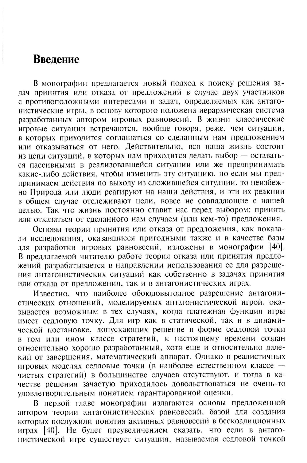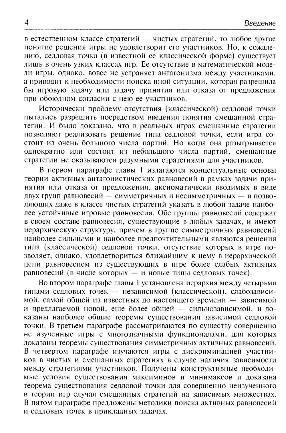 В монографии излагается новый подход к исследованию антагонизмов, позволивший получить совершенно новые понятия игровых равновесий и описать в рамках единой теории как уже известные в теории игр равновесия, так и предложенные новые. Показывается, что все равновесия (известные и предлагаемые) могут быть выстроены в две иерархические цепи - симметричных (состоящих из различных типов седловых точек) и несимметричных (состоящих из гарантированных оценок) игровых равновесий, один конец каждой из которых замыкают всегда существующие слабые равновесия, а другой - сильные равновесия. Для всех равновесий в монографии доказываются теоремы существования и необходимые условия оптимальности. Исследование проводится как в чистых, так и в смешанных стратегиях. Наибольшее внимание уделяется программным антагонистическим дифференциальным играм. Применение теоретических результатов как для задач принятия или отказа от предложения, так и для собственно игровых задач демонстрируется на большом числе примеров. Для специалистов в области теории игр, оптимизации и принятия решений.| Издательство | ЛЕНАНД |
