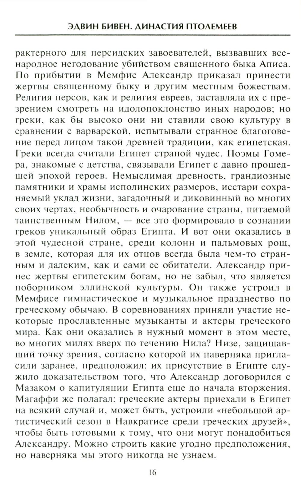 Книга Эдвина Бивена посвящена истории эллинистического Египта от времени его завоевания Александром Македонским до превращения в римскую провинцию. Сопоставляя данные античных источников и более поздней научной литературы, созданной на основе новых открытий, авторитетный британский историк создает достоверную картину политического, административного и экономического устройства Египта. Автор отмечает его культурное и религиозное своеобразие, соблюдая хронологию, анализирует историю царствования династии Птолемеев, события и итоги их правления, характер и личные взаимоотношения, а также место Египта среди других государств и его участие в международной жизни.| Издательство | Центрполиграф |