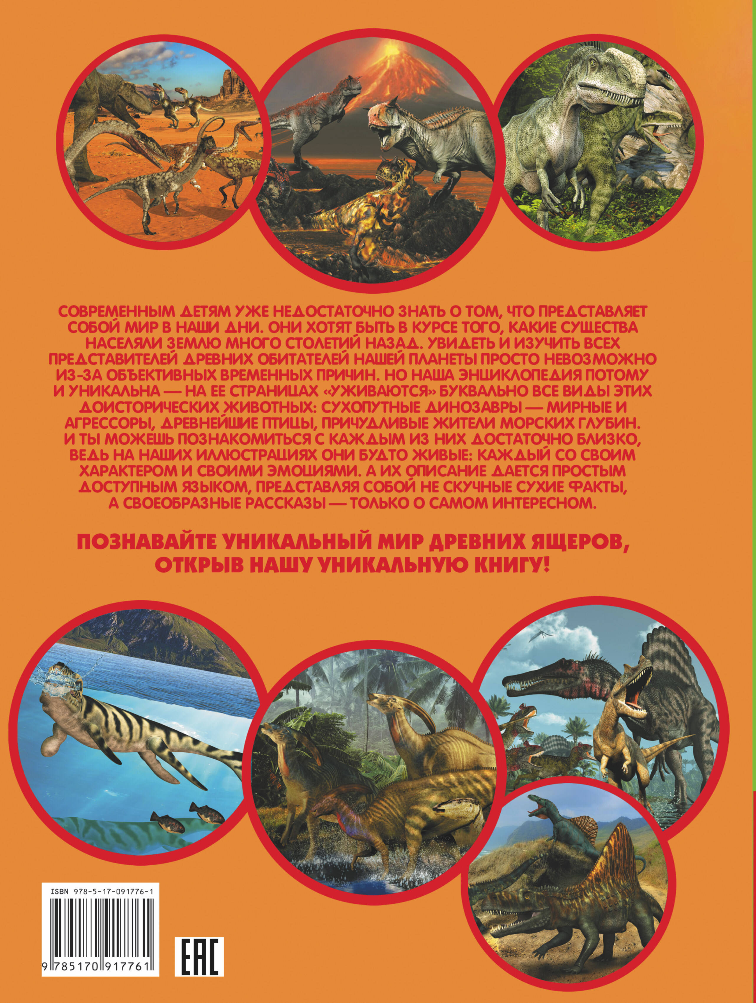 Современным детям уже недостаточно знать о том, что представляет собой мир в наши дни. Они хотят быть в курсе того, какие существа населяли Землю много столетий назад. Увидеть и изучить всех представителей древних обитателей нашей планеты просто невозможно из-за объективных временных причин. Но наша энциклопедия потому и уникальна - на ее страницах "уживаются" буквально все виды этих доисторических животных: сухопутные динозавры - мирные и агрессоры, древнейшие птицы, причудливые жители морских глубин. И ты можешь познакомиться с каждым из них достаточно близко, ведь на наших иллюстрациях они будто живые: каждый со своим характером и своими эмоциями. А их описание дается простым доступным языком, представляя собой не скучные сухие факты, а своеобразные рассказы - только о самом интересном. Познавайте уникальный мир древних ящеров, открыв нашу уникальную книгу!| Издательство | ИЗДАТЕЛЬСТВО "АСТ" |