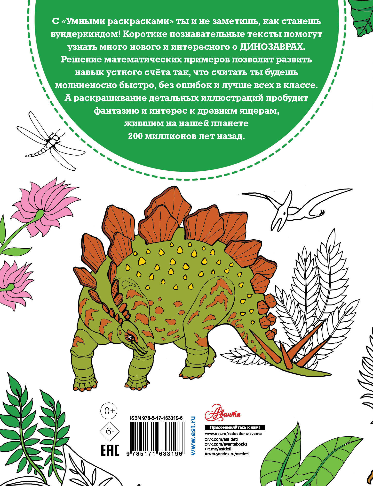 Эта книга - не просто раскраска, а самая настоящая маленькая энциклопедия, которая расскажет о древних ящерах, населявших нашу планету миллионы лет назад. Какими были знаменитые динозавры? Когда жили? Какими способностями обладали и как учёные восстанавливали их облик? Обо всём этом вы узнаете из книги! А попутно потренируете навык устного счёта, ведь на каждом развороте около раскраски есть математические примеры, которые помогут выбрать нужный цвет. Для младшего школьного возраста.| Издательство | Издательство "АСТ" |