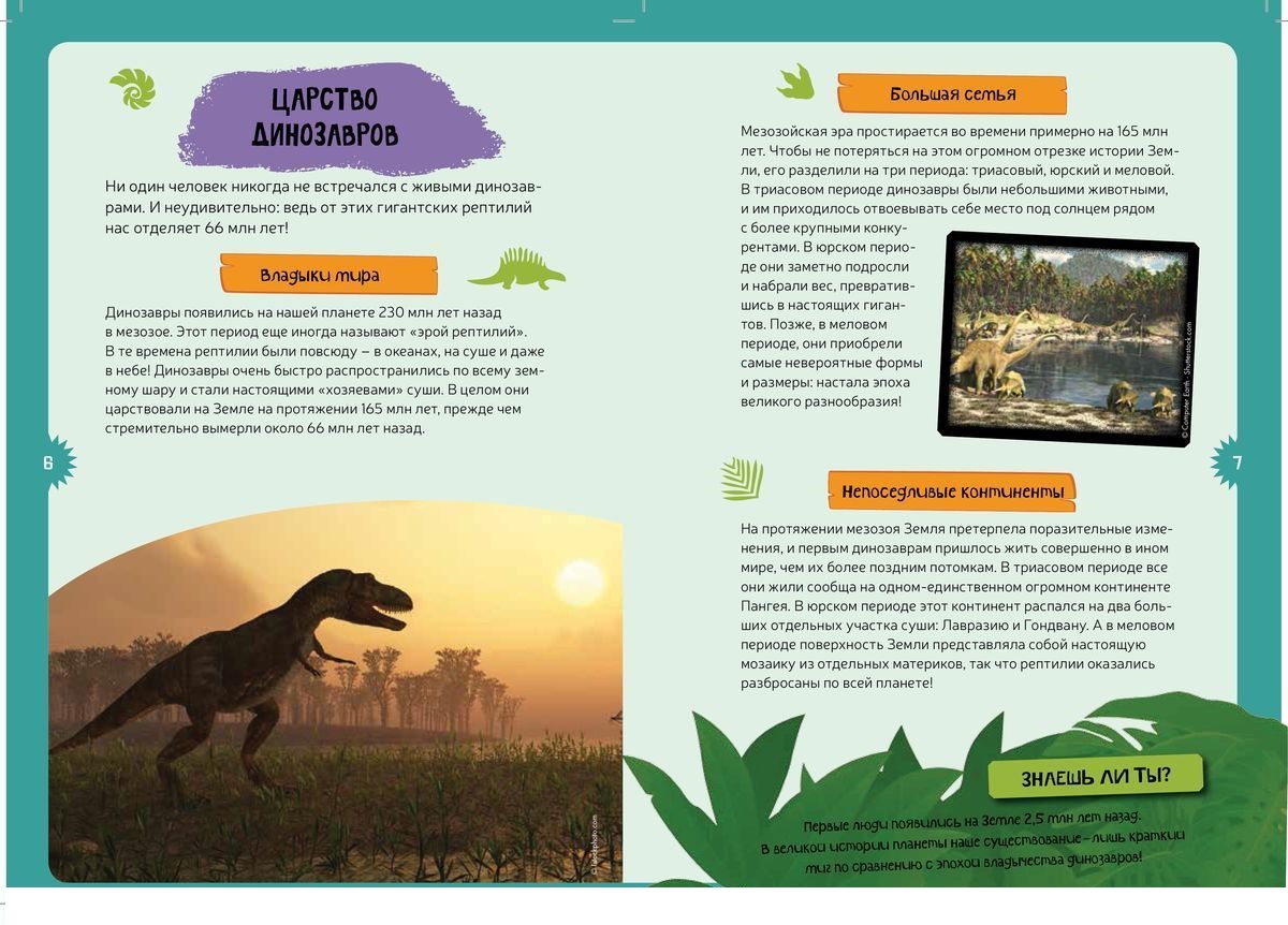 Ты узнаешь, где сохранились окаменелые остатки этих древних ящеров, как палеонтологи сохраняют и реконструируют их скелеты, какой была наша планета в те далекие времена, когда на земле царили динозавры.