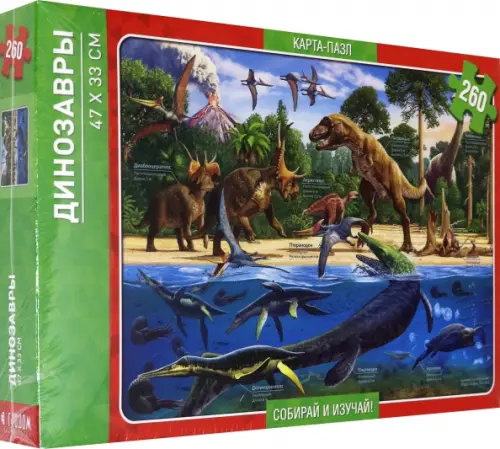 На пазле представлена реконструкция древних ящеров и их среды обитания, выполненная художником с палеонтологической точностью. Собирая игру-головоломку, Ваш малыш узнает много нового об этих удивительных существах. В процессе игры благодаря деталям разнообразной формы ребенок развивает мелкую моторику, усидчивость, логику и мышление, воображение и способность анализировать.