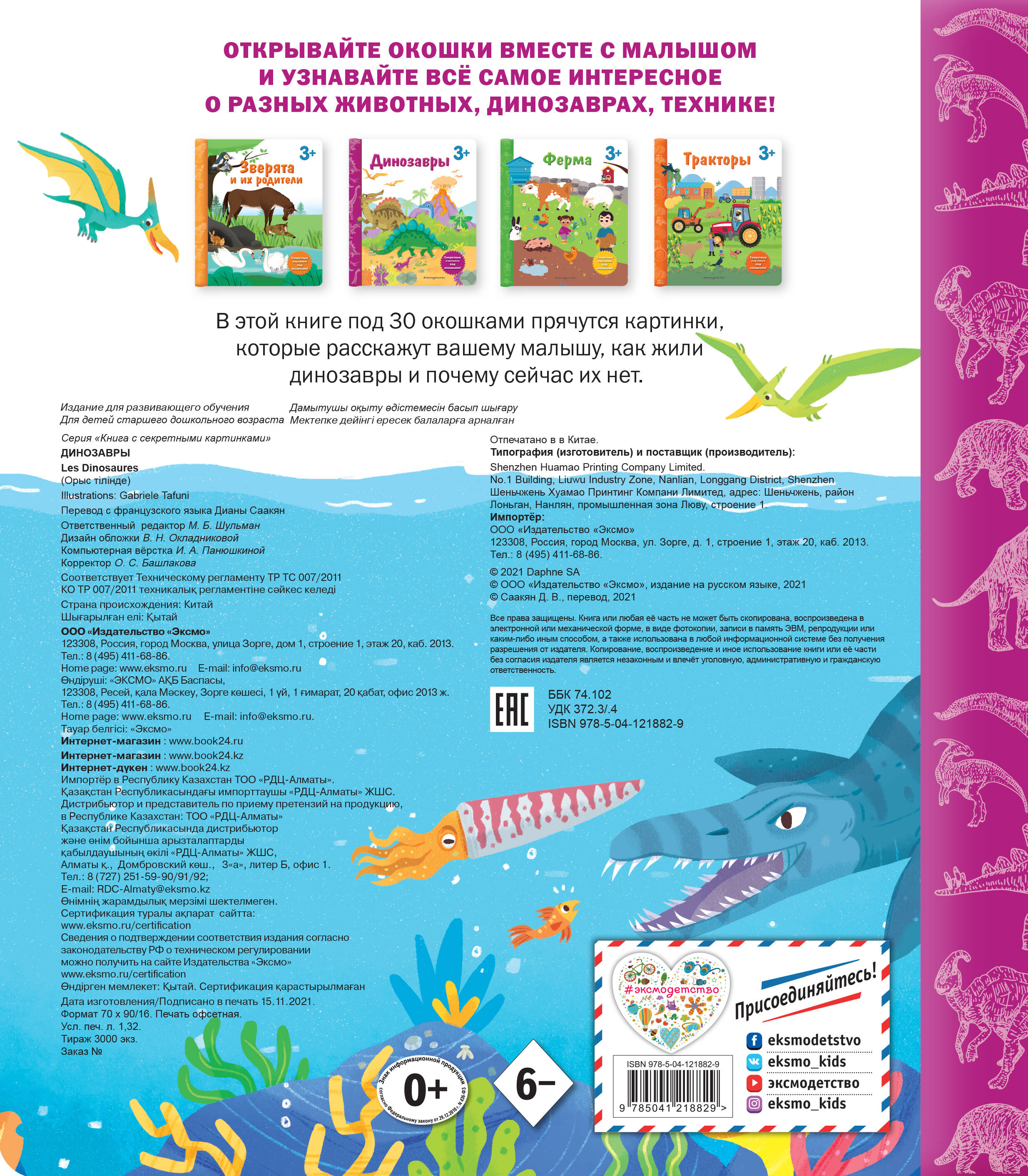Новая серия популярного формата «книги с окошками»! Дети обожают открывать их, ведь под ними скрываются дополнительные секретные картинки. Тема этой книги - динозавры. С помощью коротких познавательных текстов и ярких иллюстраций малыши узнают, какие были виды динозавров, как они выглядели, каким образом охотились, а также как палеонтологи изучают останки этих удивительных животных. Рекомендуется всем любознательным малышам!| Издательство | ООО "Издательство "Эксмо" |