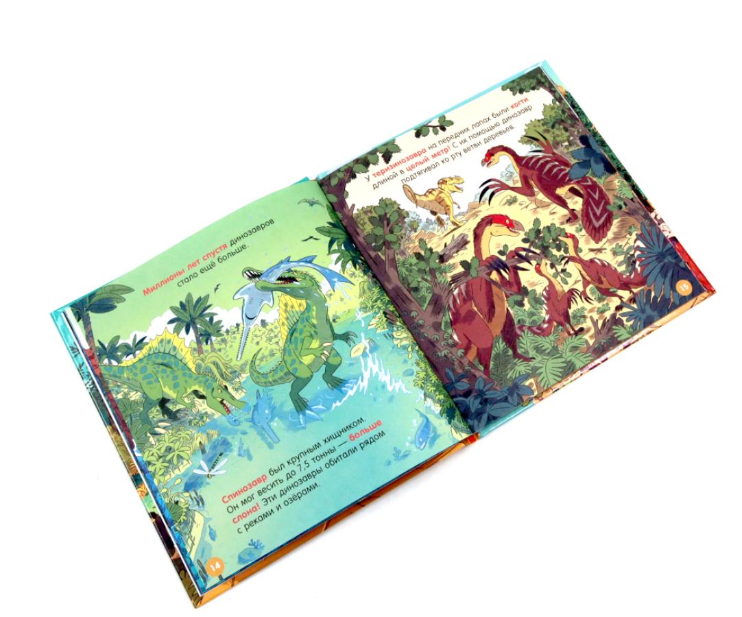Комплект книг - две энциклопедии с яркими детальными иллюстрациями - поможет маленьким читателям весело и легко познавать окружающий мир. Это книги для малышей 3-5 лет с интересными фактами, заданиями на развитие памяти и внимания и множеством открытий. Книга «Динозавры» - увлекательный рассказ о жизни этих загадочных древних животных и о профессии палеонтолога. Маленькие читатели узнают, кто из динозавров был самым грозным, есть ли на земле потомки динозавров и многое другое. В книге «Космос» малышам простым языком рассказывается о гравитации, космических исследованиях, МКС и многом другом. Например, кто первым побывал в космосе, где живут космонавты и почему они носят скафандры.