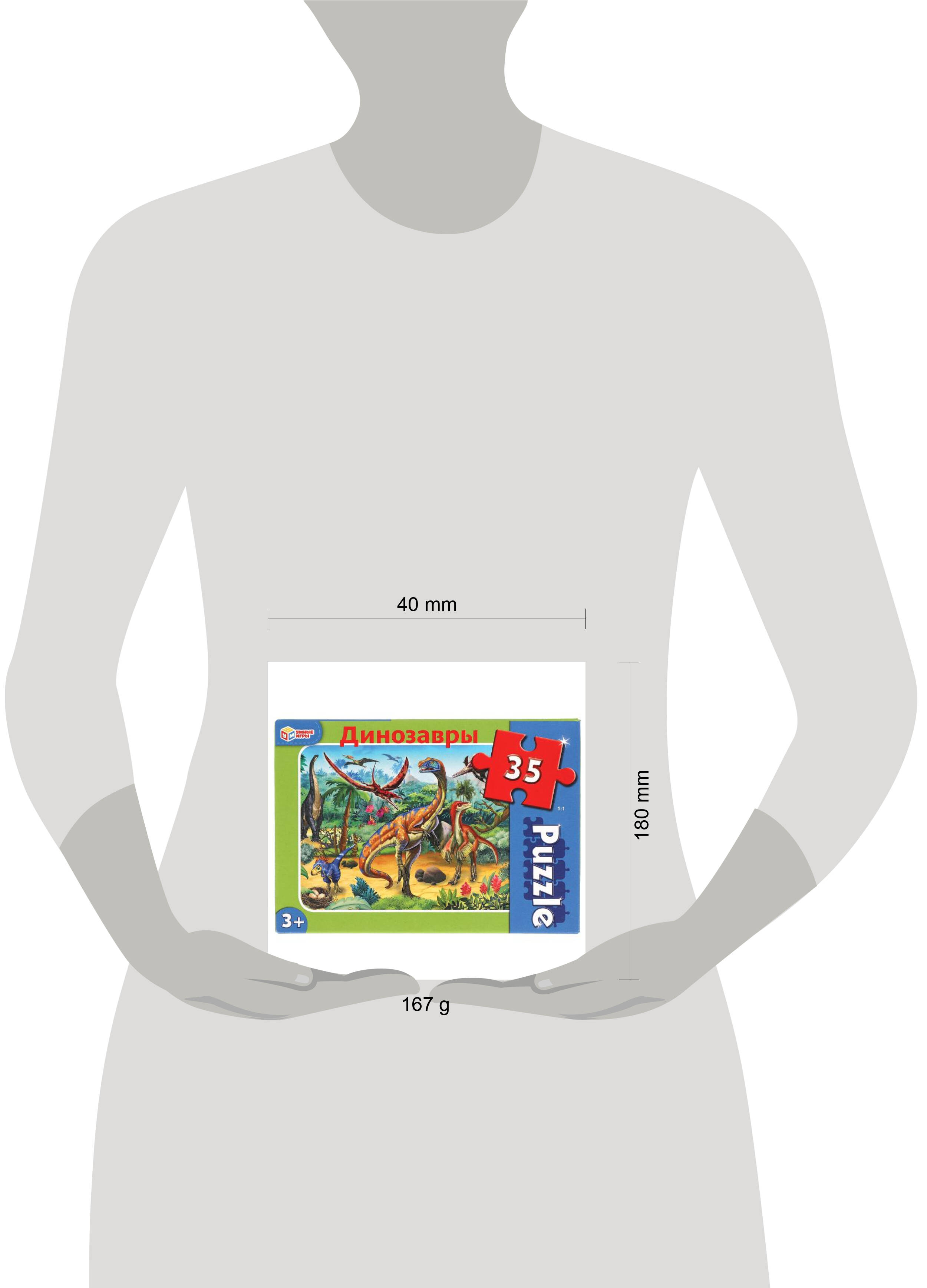 Макси-пазлы "Динозавры" ТМ "Умные игры" - отличная развивающая игра для маленьких любознаек: - 35 деталей - крупные элементы - красочный дизайн - все элементы хорошо и плотно соединяются друг с другом Задача ребёнка - в правильной последовательности соединить элементы пазла и получить в результате красочную картинку с изображением удивительных доисторических ящеров. Сборка пазлов - это очень увлекательное занятие, в процессе которого дети учатся искать и совмещать детали разной формы, с каждым разом делая это всё лучше и быстрее. Собирая макси-пазлы ТМ "Умные игры", ребёнок развивает: - внимание - память - мышление - моторику - усидчивость Размер: 4 х 18 х 13 см. Материал: картон. Рекомендовано детям от 3-х лет.