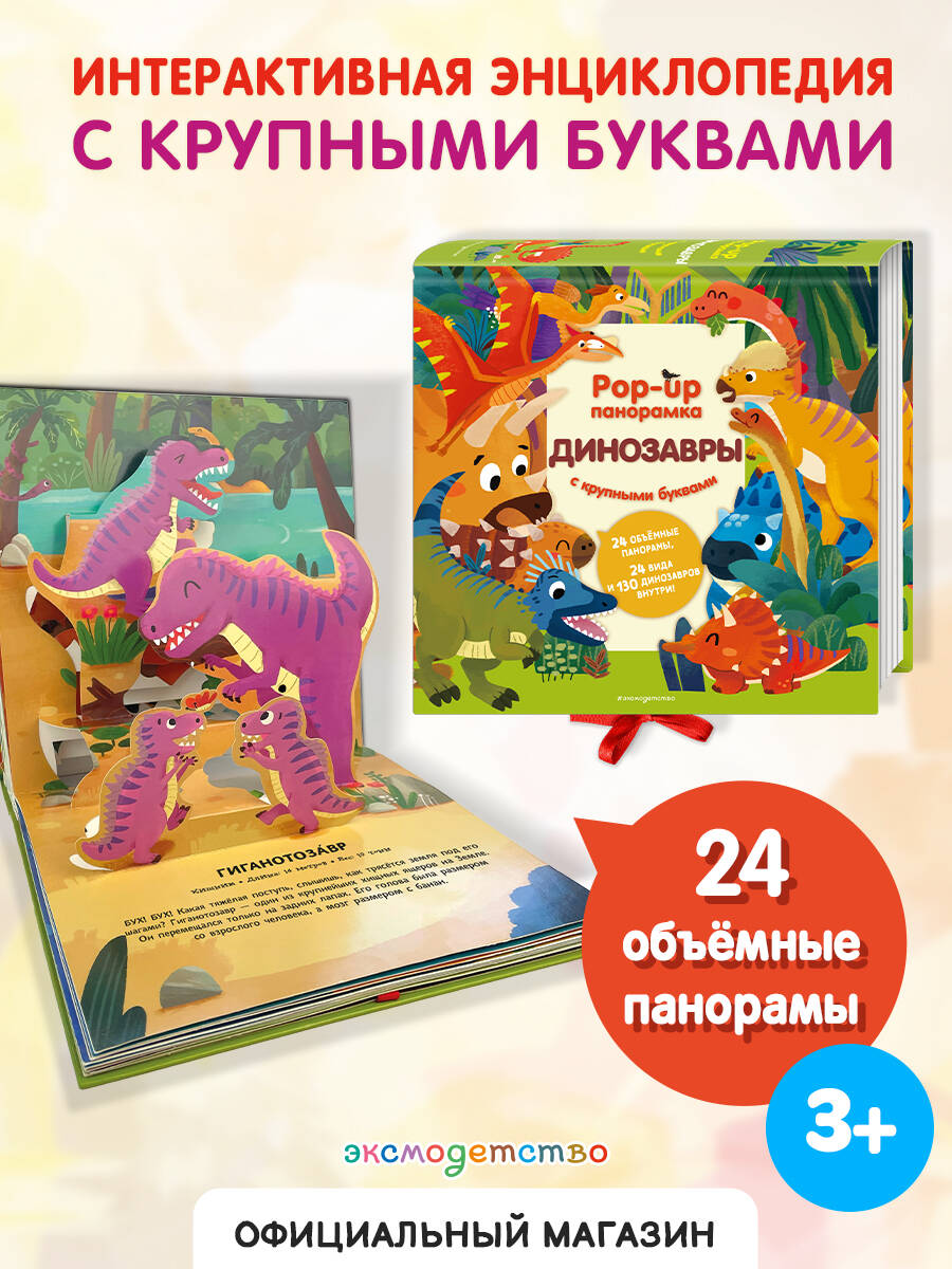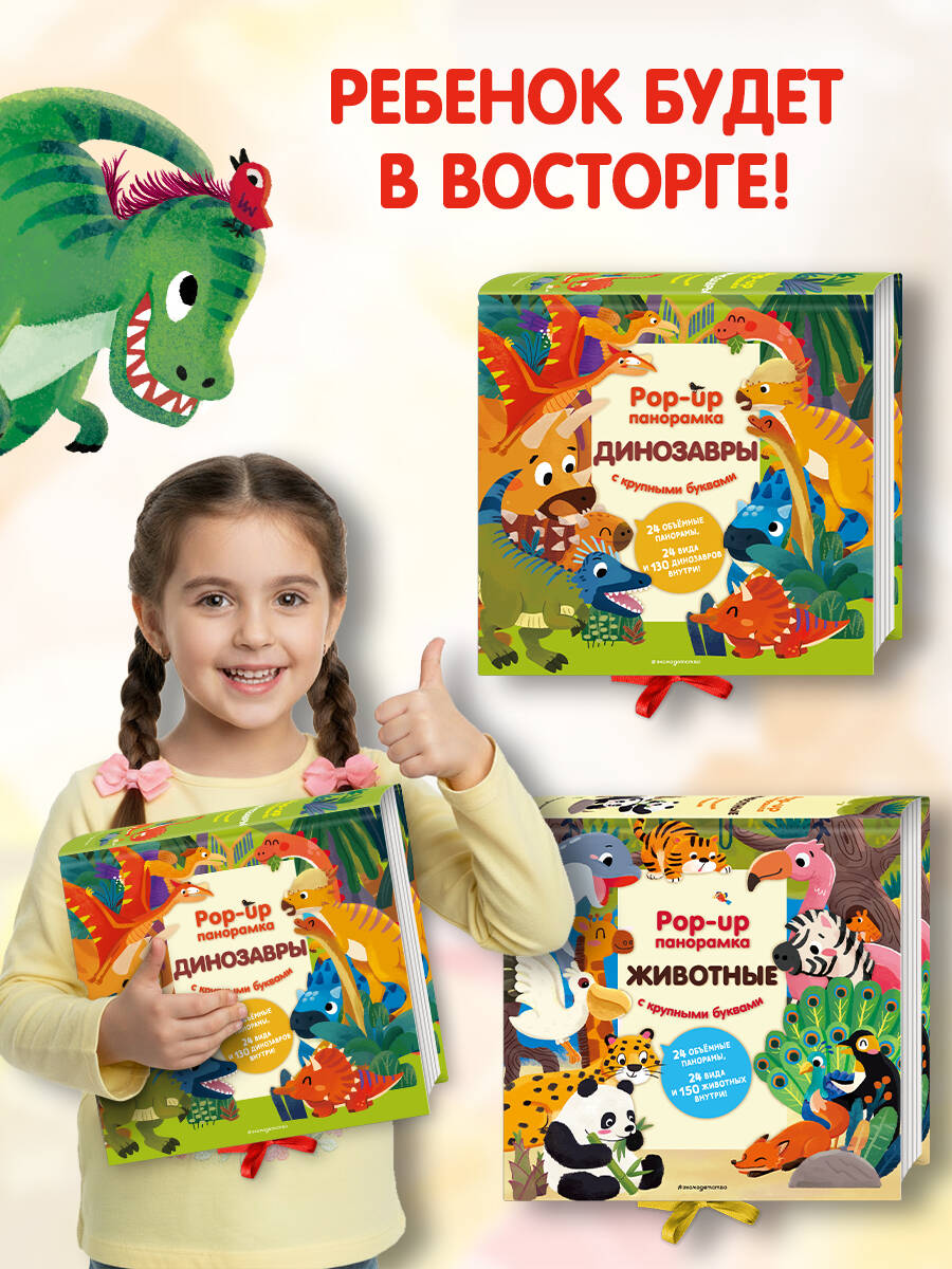 Аннотация: Динозавры. Pop-up панорамка с крупными буквами