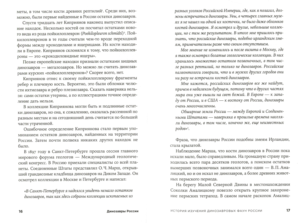 Более ста лет Россия была гигантским белым пятном в истории динозавров. Поиску и изучению остатков русских динозавров мешало многое: нехватка специалистов, геологическая история региона, удаленность перспективных местонахождений. Находки динозавров ограничивались несколькими костями, и только в последние двадцать-тридцать лет ситуация резко и кардинально изменилась. Было найдено пять крупных и важных в мировом значении местонахождений. Некоторые открытия стали научной сенсацией: в России добыли остатки древнейшего оперенного динозавра, самую богатую и разнообразную фауну маммалиаформ середины юрского периода, обнаружили огромный регион, где во времена динозавров эволюция практически остановилась. В книге научного журналиста, историка палеонтологии Антона Нелихова рассказано об этих и многих других находках, теориях и гипотезах, а также о непростой истории открытия и «закрытия» местонахождений русских динозавров, о новейших методах изучения их остатков, о динозаврах в народной культуре и, наконец, о перспективах изучения русских динозавров.| Издательство | Альпина нон-фикшн |