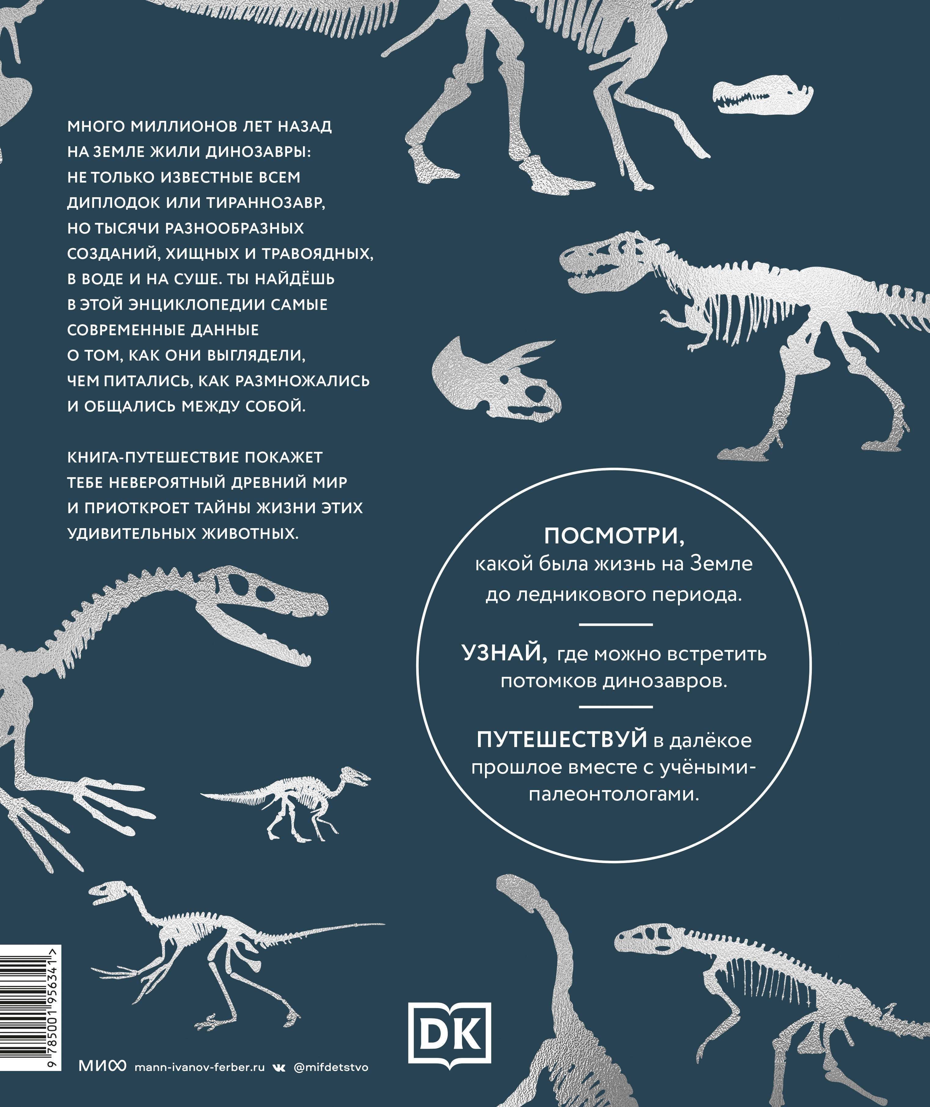 Самая полная современная энциклопедия о динозаврах и жизни до Ледникового периода с реалистичными 3D-иллюстрациями и актуальными научными данными. Новая энциклопедия от издательства Dorling Kindersley (DK) откроет читателям доисторический мир, в котором жили могучие динозавры, великолепные саблезубые кошки и устрашающие морские рептилии. На детальных и реалистичных иллюстрациях перед вами, как живые, предстанут более 60 древних существ: велоцираптор с убийственными когтями на лапах, диплодок длиной в три автобуса и даже змеи и мелкие млекопитающие - предки современных животных. Благодаря современным технологиям моделирования и компьютерной графики, а также новейшим открытиям ученых-палеонтологов, в этой книге удалось собрать самые подробные и актуальные данные о внешнем виде, жизни, питании, размножении динозавров и других невероятных созданий. Идеальная книга для всех, кто хочет полностью погрузиться в тему доисторической жизни, изучение которой продолжается по сей день. Для кого эта книга: Для детей от 9 лет и их родителей и друзей.| Издательство | МАНН, ИВАНОВ И ФЕРБЕР ООО |