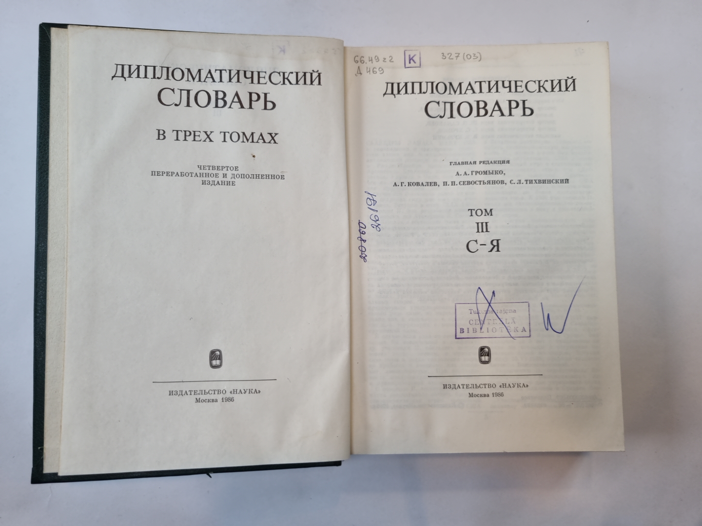 Аннотация: Дипломатический словарь. В трех томах. Том 3