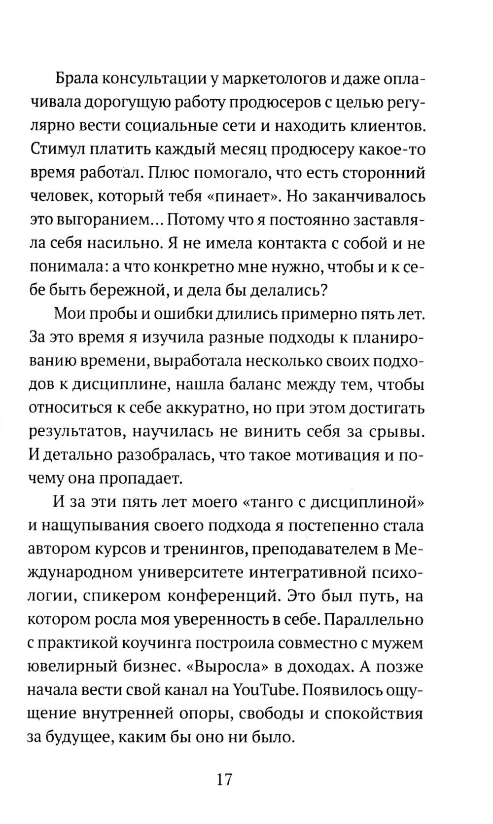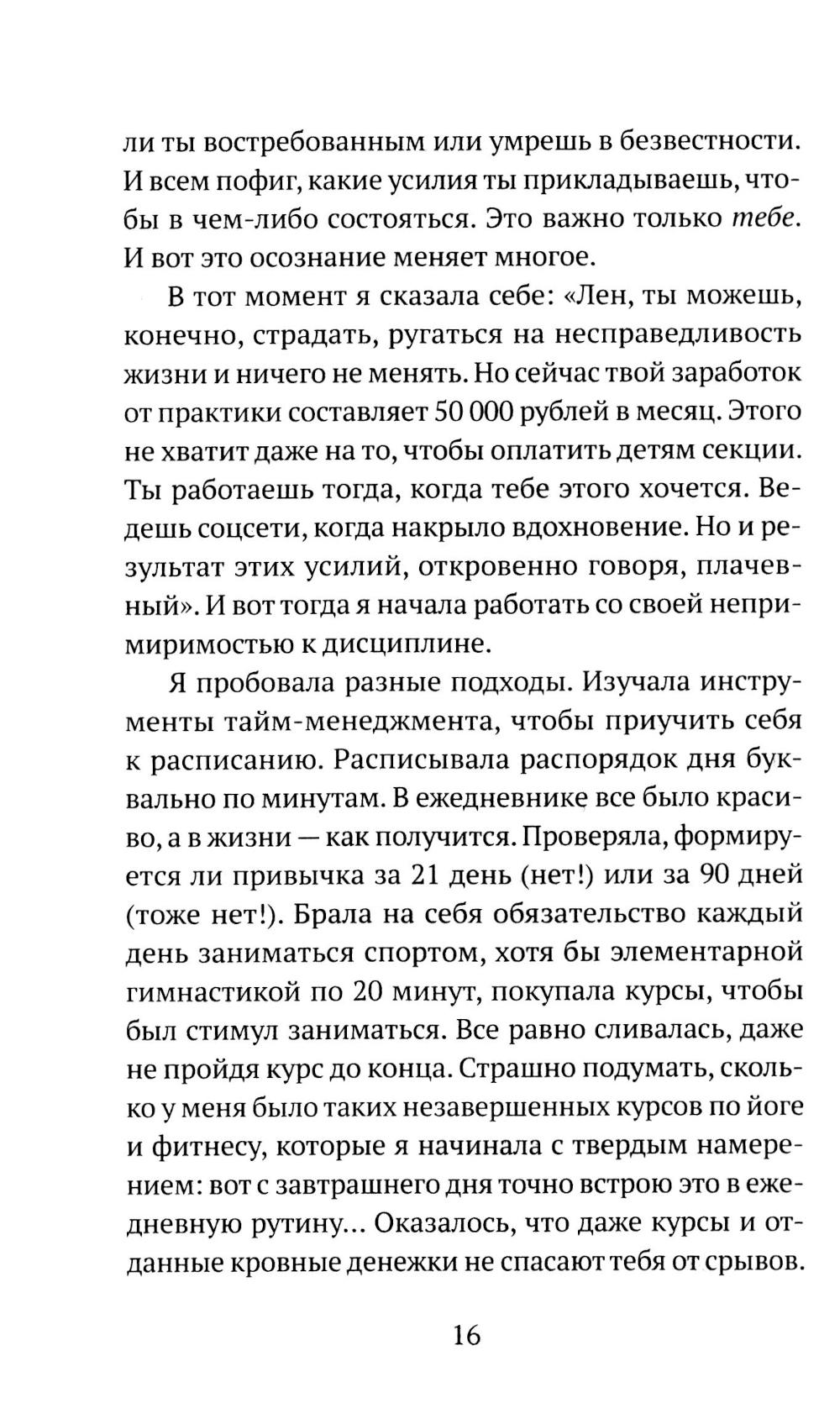 «Дисциплина - это просто!» - книга-перепрошивка, меняющая ваш взгляд на дисциплину. Она мотивирует еще раз посмотреть на сложную тему регулярности и достижения целей, но уже другим взглядом. Лена Каменева - коуч, психолог, продюсер - простым языком раскрывает, что такое мотивация, дисциплина, планирование. Дает читателю инструменты, которые помогут ему легко внедрить дисциплину в свою жизнь и перестать переживать из-за постоянных «откатов». Без сложных техник и скучной теории учит находить свой формат отношений с регулярностью и рутиной.| Издательство | Черная речка |