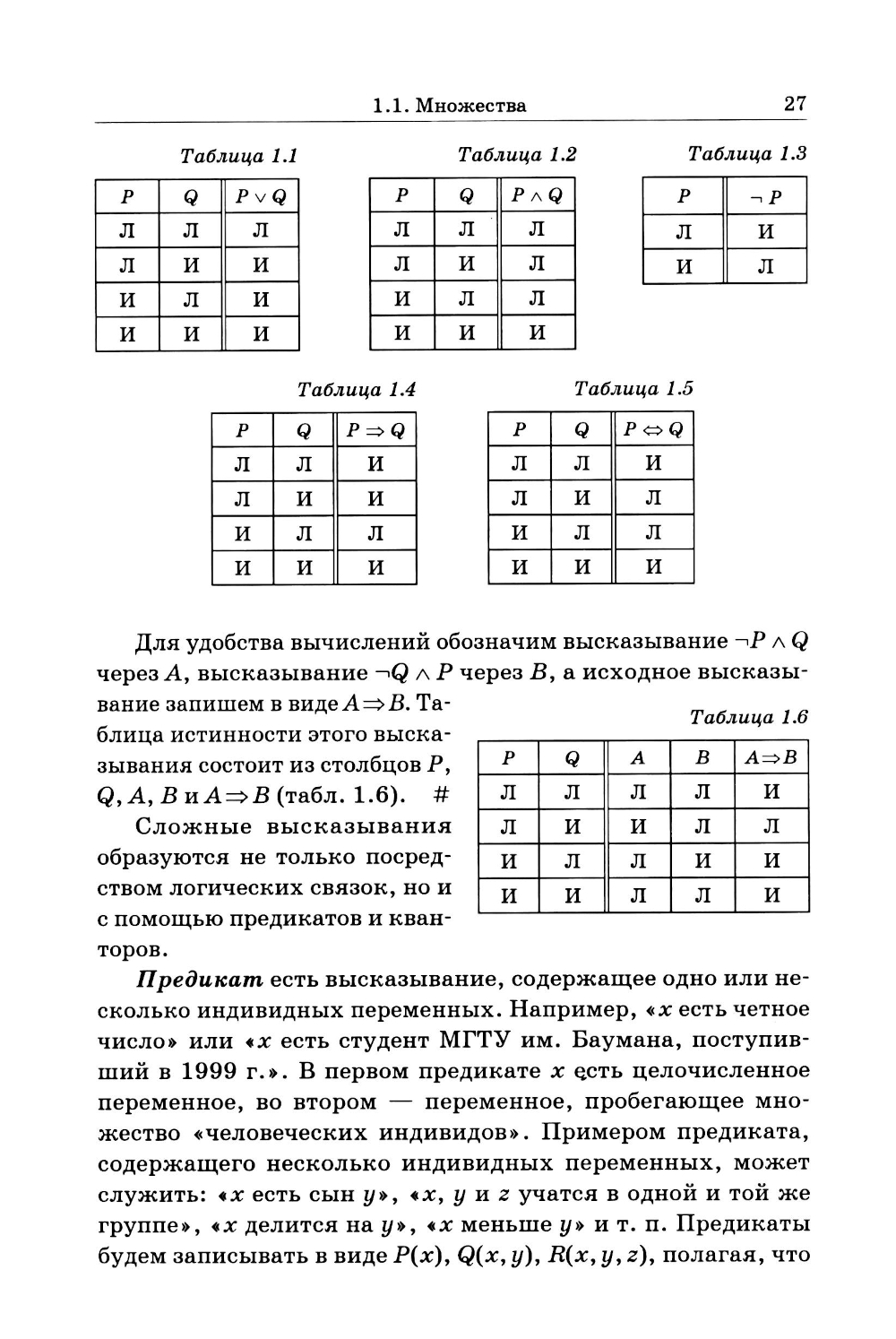В девятнадцатом выпуске серии «Математика в техническом университете» изложены теория множеств и отношений, элементы современной абстрактной алгебры, теория графов, классические понятия теории булевых функций, а также основы теории формальных языков, куда включены теории конечных автоматов, регулярных языков, контекстно-свободных языков и магазинных автоматов. В анализе графов и автоматов особое внимание уделено алгебраическим методам. Содержание учебника соответствует курсу лекций, который авторы читают в МГТУ им. Н.Э. Баумана. Для студентов технических университетов. Может быть полезен преподавателям, аспирантам и инженерам.| Издательство | МГТУ им. Баумана |