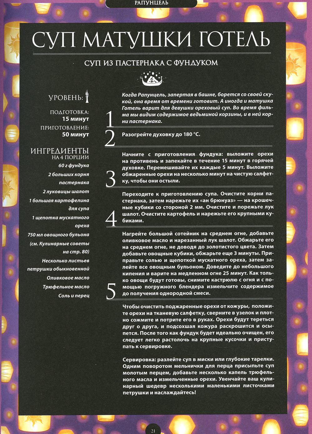 самых интересных рецептов из самых знаменитых фильмов Дисней и Пиксар - сливовый пирог от Белоснежки, настоящие цзяоцзы от Мулан, любимые тамале Коко, кюфта, достойная принца Али из «Аладдина» и волшебный десерт прямо с коронационного обеда Эльзы из «Холодного сердца». Листайте эту книгу и погружайтесь в волшебный мир своих любимых героев. Пригласите их за стол вместе с семьей и друзьями, приготовьте эти сказочные блюда и порадуйте своих домашних будь их 2, 7 или даже 101!| Издательство | Эксмо |