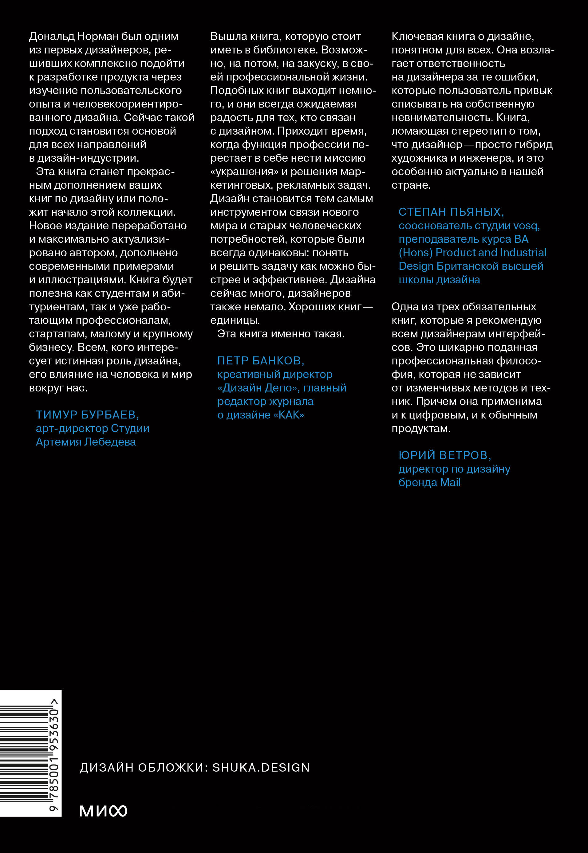 Классическая книга о сути дизайна, настоящий справочник дизайнерских находок и ошибок. Она о вещах, которые нас окружают, о том, почему они были созданы именно такими и как эти вещи можно улучшить с точки зрения человекориентированного дизайна.| Издательство | Манн, Иванов и Фербер |