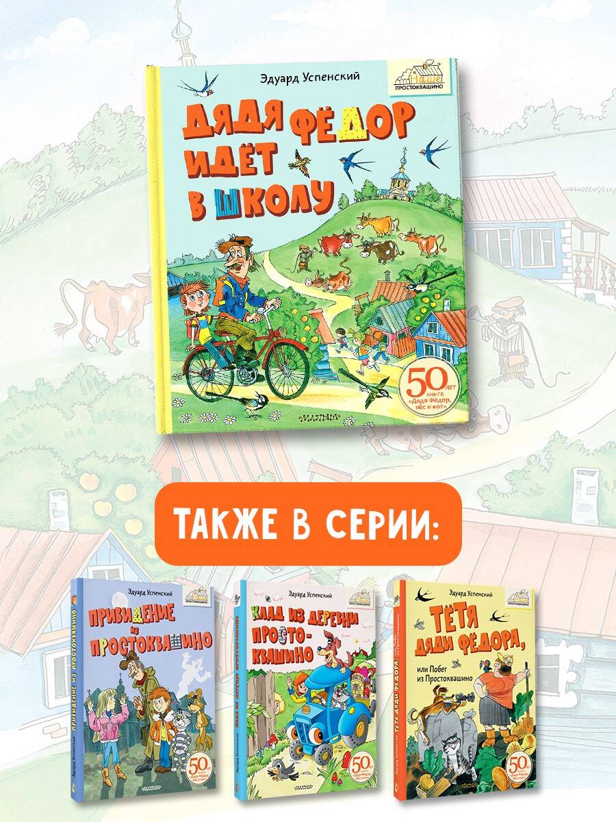 Дорогие ребята! Вы уже ходите или вот-вот пойдёте в школу. А вы знаете, кто в школе самый главный? Конечно, учитель. Он непременно будет строгим, но справедливым и весёлым. Он научит вас тому, чего вы до сих пор не умели. С ним вместе вы прочитаете новые книги и узнаете много полезного и интересного. Чтобы вы никогда не боялись идти в школу, отвечать уроки, писать контрольные и сочинения, читайте книгу «Дядя Фёдор идёт в школу». Интересно, какая ему достанется первая учительница? Желаю удачи! Э. Успенский| Издательство | Издательство "АСТ" |