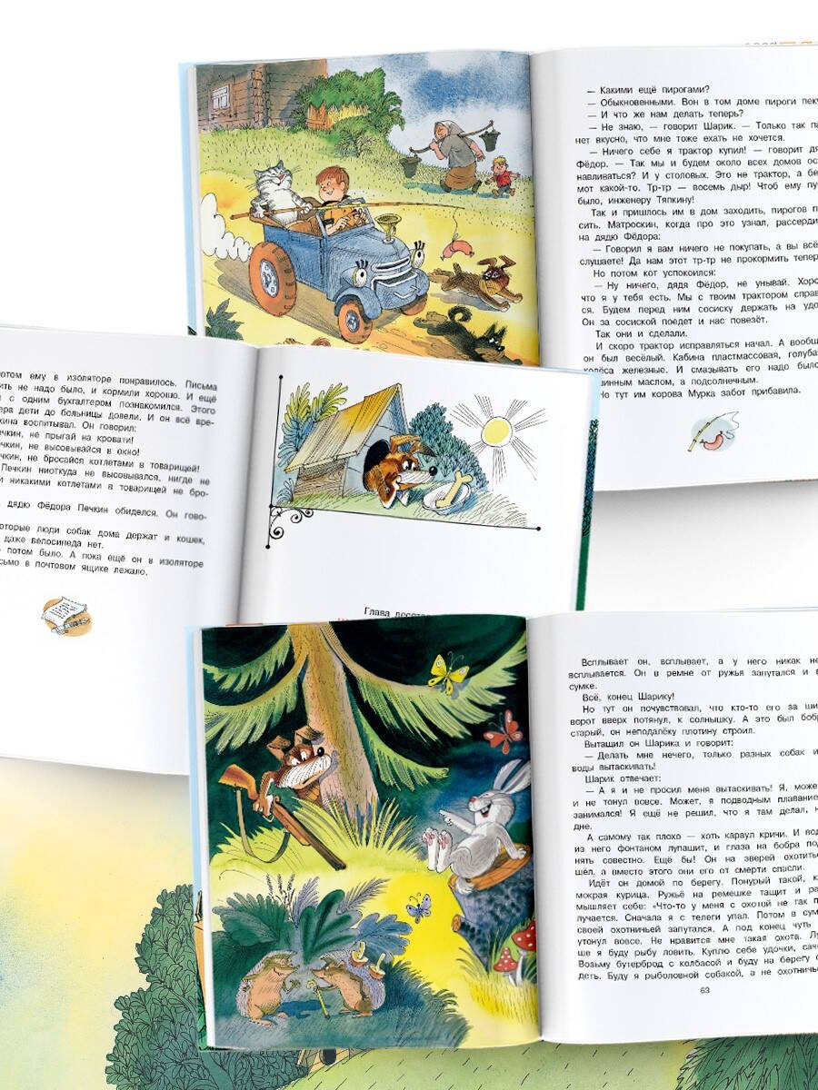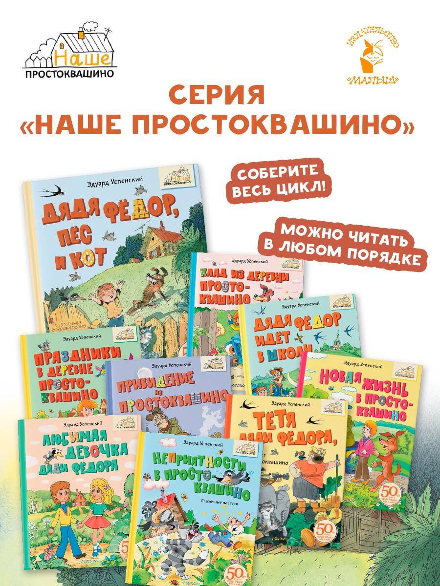 Простоквашино - самая знаменитая в нашей стране деревня. В ней живут дядя Фёдор, пёс Шарик и кот Матроскин - герои повести Эдуарда Успенского. И ещё почтальон Печкин. Он, конечно, не герой, но всё-таки персонаж, хотя и зловредный. Почему же все так любят Простоквашино? Да потому, что там есть всё для настоящего счастья: речка, лес, зимой - снега по уши, летом - купание, весной - наводнение, ну а осенью - тихие вечера с книжками у печки. Приезжайте в наше Простоквашино! Э. Успенский| Издательство | Издательство "АСТ" |