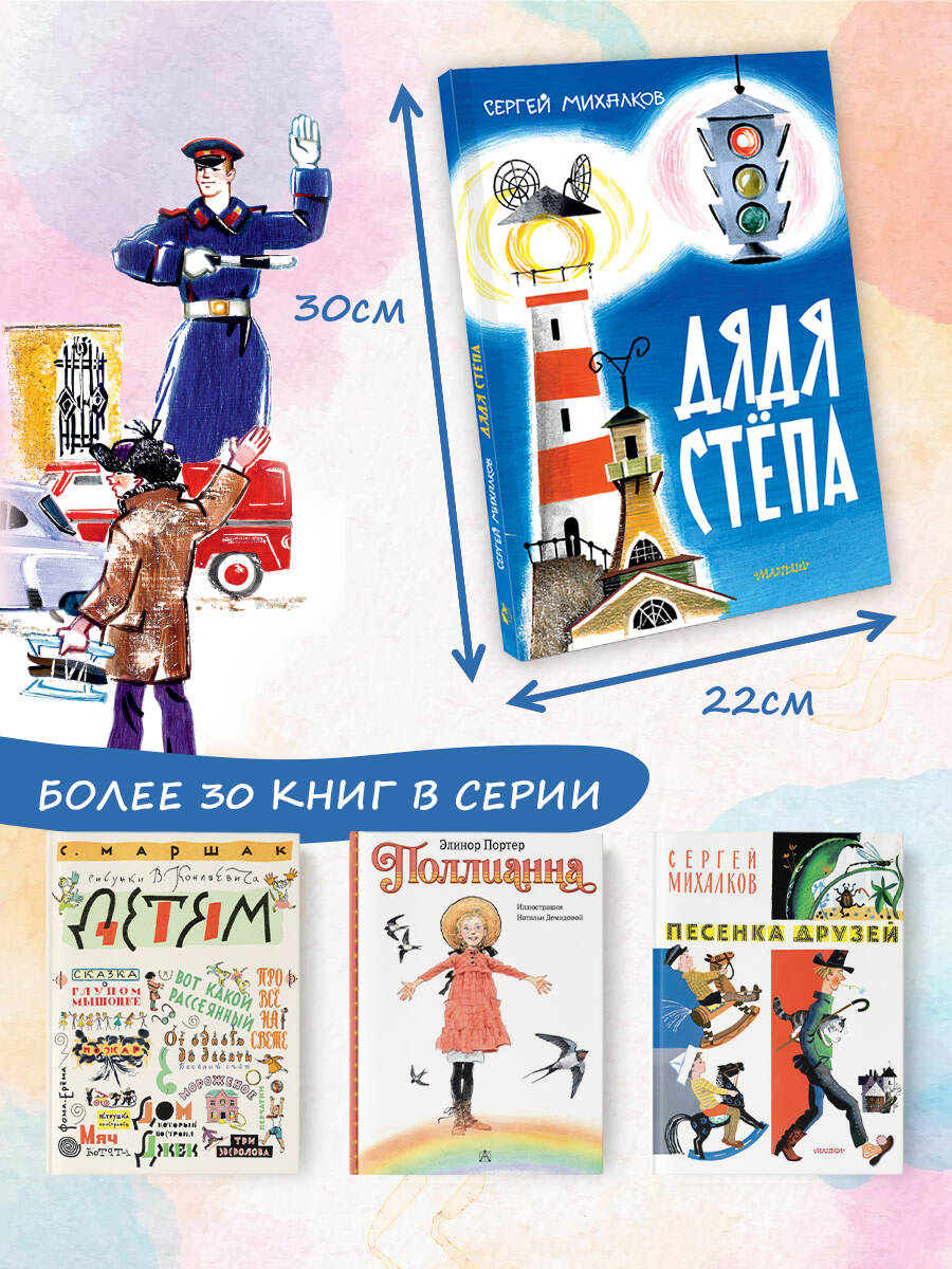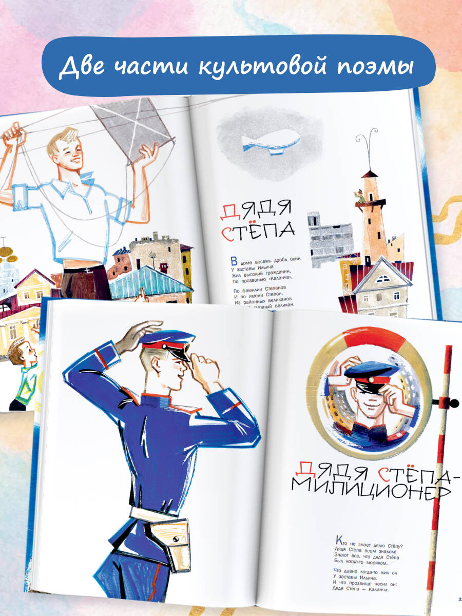 В книгу Сергея Михалкова "Дядя Стёпа" вошли две части поэмы о самом главном великане: "Дядя Стёпа" и "Дядя Стёпа - милиционер". Степан Степанов - пример для всех: друг, коллега, старшина, спортсмен и защитник Родины. Вадим Курчевский и Николай Серебряков - режиссёры-мультипликаторы, художники-постановщики, сценаристы мультфильмов, художники детских книг, заслуженные деятели искусств РСФСР. Оба работали на киностудии "Союзмультфильм". Художники Вадим Курчевский и Николай Серебряков очень точно передали образ дяди Стёпы. Перед нами настоящий герой, слава которого не померкнет никогда. Для младшего школьного возраста.| Издательство | Издательство "АСТ" |