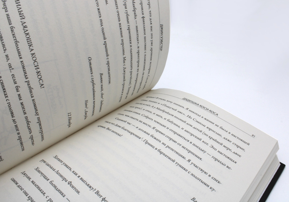 В романе «Дядюшка Коси-Коса» американской писательницы Джин Уэбстер главная героиня - молодая девушка, воспитанница приюта; в письмах к опекуну она рассказывает о своей жизни, мечтах, горестях и радостях, дружбе и любви. Писательница перенесла на страницы книги многое из своей жизни. Текст неоднократно экранизировавшегося романа дан в переводе Елены Беляковой. Книгу украшают забавные рисунки самой писательницы, а также иллюстрации американского художника Джона Ри Нилла, оформлявшего первые книги Фрэнка Баума о волшебной стране Оз.| Издательство | СЗКЭО |