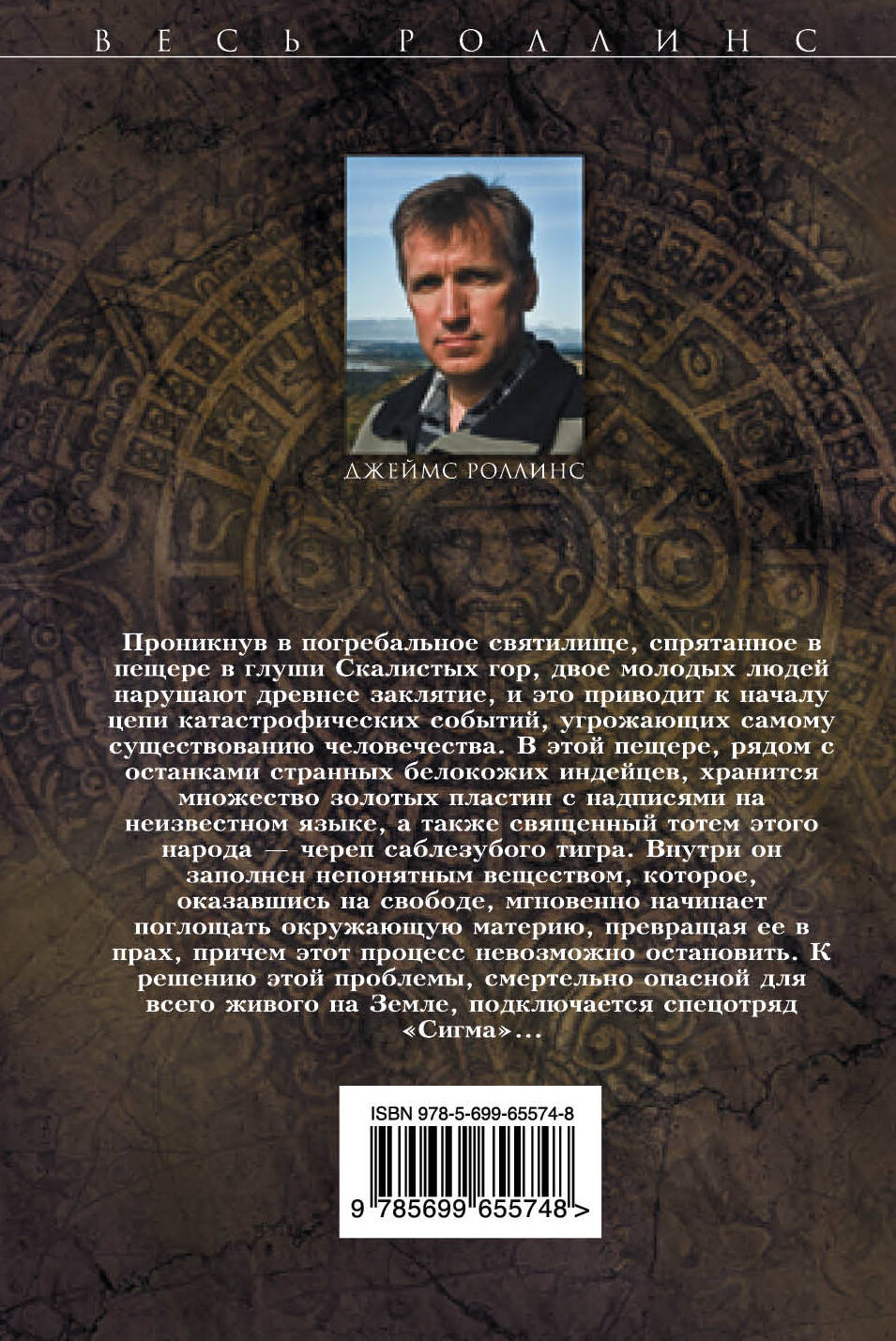 Проникнув в погребальное святилище, спрятанное в пещере в глуши Скалистых гор, двое молодых людей нарушают древнее заклятие, и это приводит к началу цепи катастрофических событий, угрожающих самому существованию человечества. В этой пещере, рядом с останками странных белокожих индейцев, хранится множество золотых пластин с надписями на неизвестном языке, а также священный тотем этого народа - череп саблезубого тигра. Внутри он заполнен непонятным веществом, которое, оказавшись на свободе, мгновенно начинает поглощать окружающую материю, превращая ее в прах, причем этот процесс невозможно остановить. К решению этой проблемы, смертельно опасной для всего живого на Земле, подключается спецотряд «Сигма»...| Издательство | ООО "Издательство "Эксмо" |