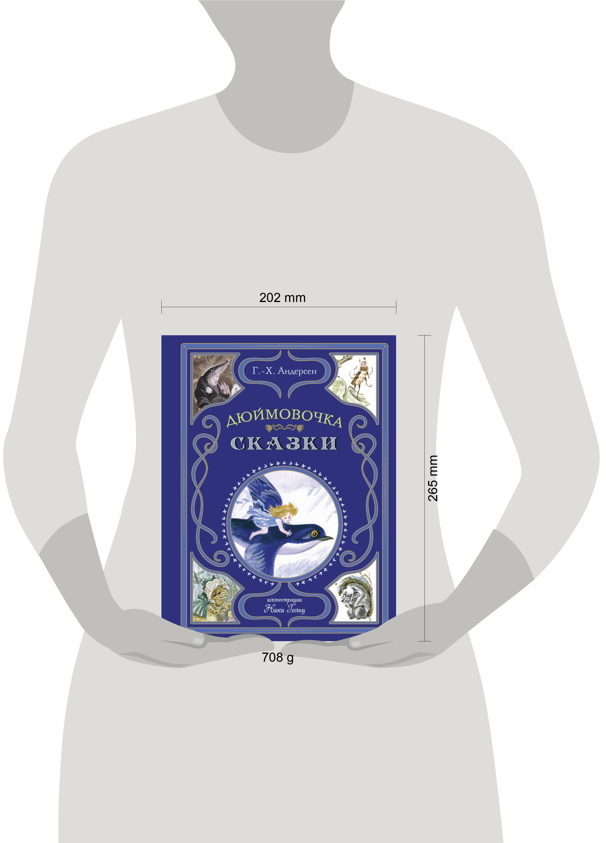 Издание подарочного формата в великолепном полиграфическом исполнении. Твёрдый переплёт с выпуклыми элементами и частичным лаком. Цветные форзацы. Плотная тонированная бумага. Чёткий, крупный, хорошо читаемый шрифт. Заслуженный художник России Ника Гольц была твёрдо убеждена: бумажная книга с цветными иллюстрациями должна быть у каждого ребёнка, и потому художница особенно тщательно подходила к созданию иллюстраций. Её работы навевают на размышления о бесконечности, они окутаны покровом загадочности и таинственности, и в то же время её картины пробиваются ярким лучом радости и надежды. Впечатления, полученные от иллюстраций Ники Гольц, останутся с вами на всю жизнь. В 2006 году за иллюстрации к этой книге Ника Гольц была награждена Дипломом Г.-Х. Андерсена - самой главной в мире премии в области детской литературы и иллюстрации. Мир сказок Г.-Х. Андерсена, сотканный из народных преданий и необыкновенной фантазии автора, населён самыми необычными созданиями. Но будь то некрасивый утёнок, говорящий цветок или крошечная девочка Дюймовочка - мы чувствуем сложность человеческих эмоций каждого героя, проникаемся их переживаниями и учимся состраданию. Тексты сказок печатаются в каноничном переводе Анны и Петра Ганзен. В коллекцию с иллюстрациями Ники Гольц вошли книги: А. де Сент-Экзюпери «Маленький принц», Г.-Х. Андерсен «Дюймовочка. Сказки» и О. Уайльд «Звёздный мальчик. Сказки».| Издательство | ООО "Издательство "Эксмо" |