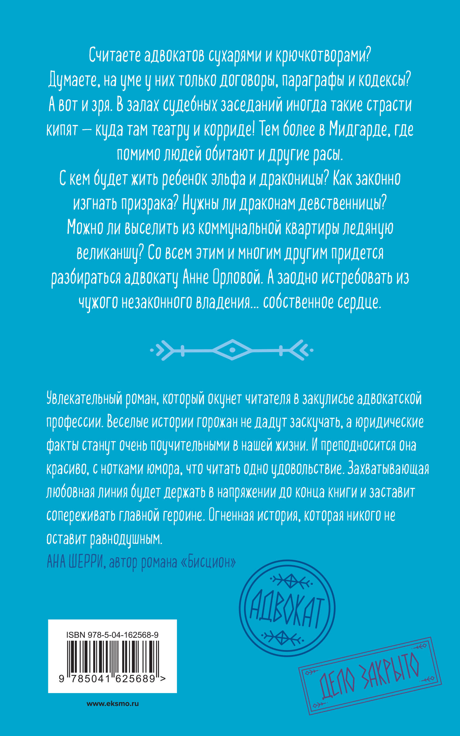 Считаете адвокатов сухарями и крючкотворами? Думаете, на уме у них только договоры, параграфы и кодексы? А вот и зря. В залах судебных заседаний иногда такие страсти кипят - куда там театру и корриде! Тем более в Мидгарде, где помимо людей обитают и другие расы. С кем будет жить ребенок эльфа и драконицы? Как законно изгнать призрака? Нужны ли драконам девственницы? Можно ли выселить из коммунальной квартиры ледяную великаншу? Со всем этим и многим другим придется разбираться адвокату Анне Орловой. А заодно истребовать из чужого незаконного владения... собственное сердце. С этой книгой вы сможете: 1. Погрузиться в жизнь адвоката в магическом мире. 2. Разобраться в тонкостях развода орочьего гарема, укротить строптивого призрака, сравнить укусы оборотня и пуделя, одолеть пьяного гнома при помощи Уголовного кодекса и многое другое. 3. Узнать, правда ли драконы предпочитают девственниц. 4. Выяснить симптомы любви и нужно ли влюбленному хирургическое вмешательство. 5. Получить порцию отличного настроения, наблюдая, как героиня находит лазейки в законах.| Издательство | ООО "Издательство "Эксмо" |