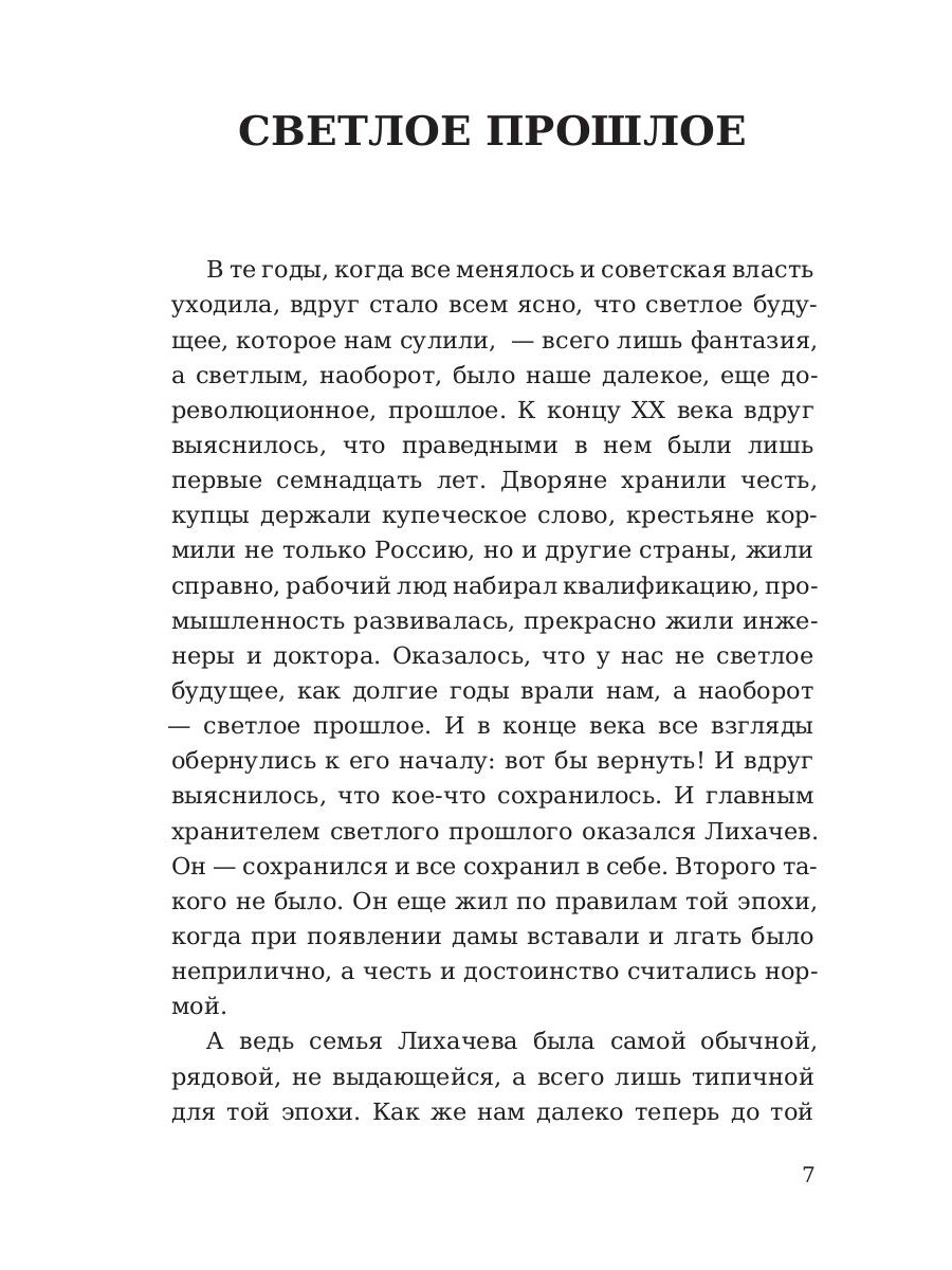 Духовный авторитет академика Дмитрия Сергеевича Лихачёва так велик, что его справедливо называют «совестью нации». Его книги, статьи, беседы - великое наследие, изучение которого помогает хранить традиции русской культуры, служению которым он посвятил свою жизнь. В стране возникали всё новые «властители дум» и порой казалось, вот-вот будет создано справедливое общество. Но популярность политиков стихала, фон общественной жизни менялся. Выстоял только скромный, глубоко интеллигентный Лихачёв, говоривший вслух об истинных ценностях.