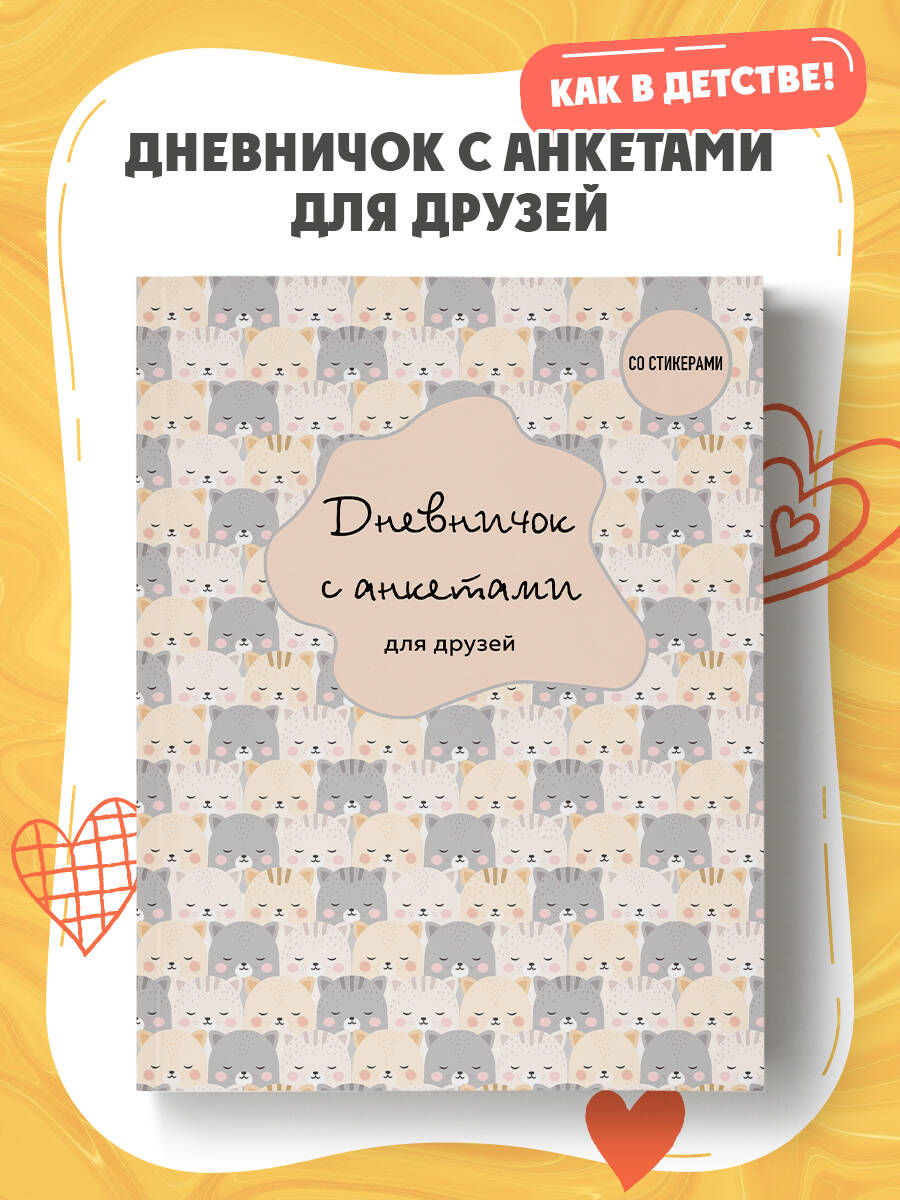 Дневничок с анкетами для друзей станет незаменимым атрибутом для каждой девочки. Это дневник для тех, кто: - хочет лучше узнать своих друзей; - хочет сохранить приятные воспоминая; - любит знакомиться с новыми людьми; - любит составлять и заполнять анкеты. С его помощью вы сможете: - заполнить собственную анкету; - предложить каждому другу заполнить анкету; - сохранить свои впечатления, эмоции и даже секреты. Технические параметры: - удобный формат А5 (162×210 мм); - 96 страниц на офсетной бумаге; - стильная обложка из переплетного картона; - яркий блок. Под стильной обложкой каждую ждет красочный блок и яркие стикеры. Дневник станет отличным подарком для девочки младшего и среднего школьного возраста. А качественные материалы, из которых он выполнен, позволят сохранить записанное в него на долгие годы.| Издательство | ООО "Издательство "Эксмо" |