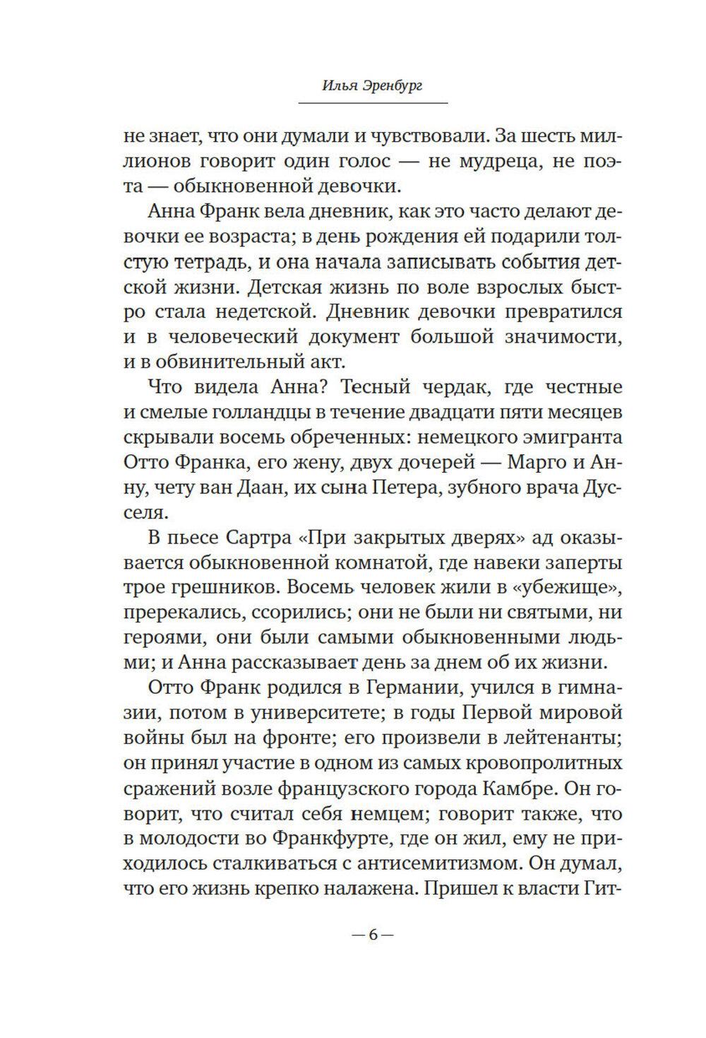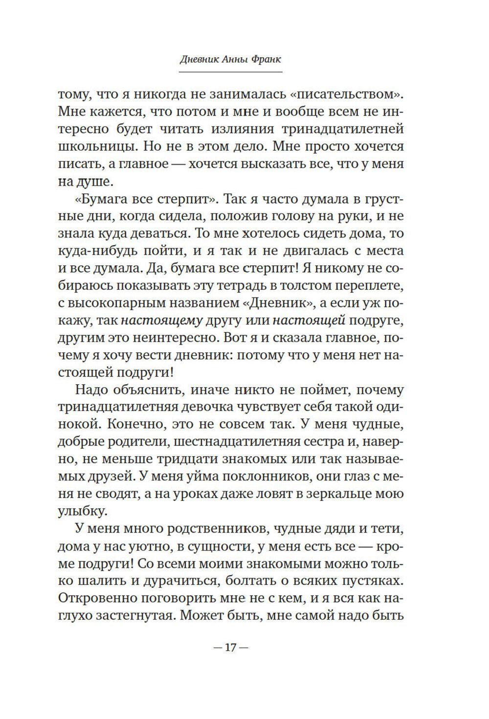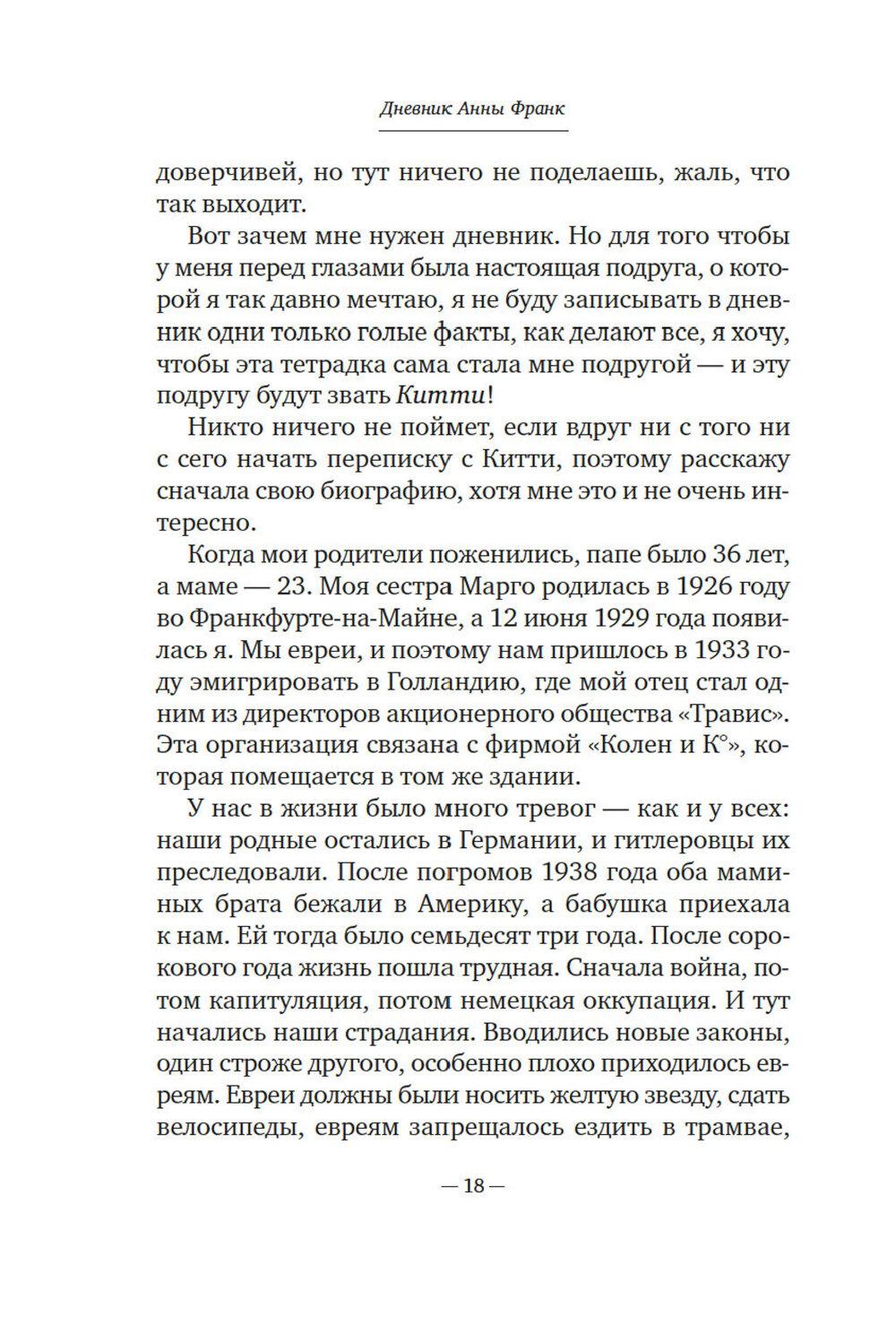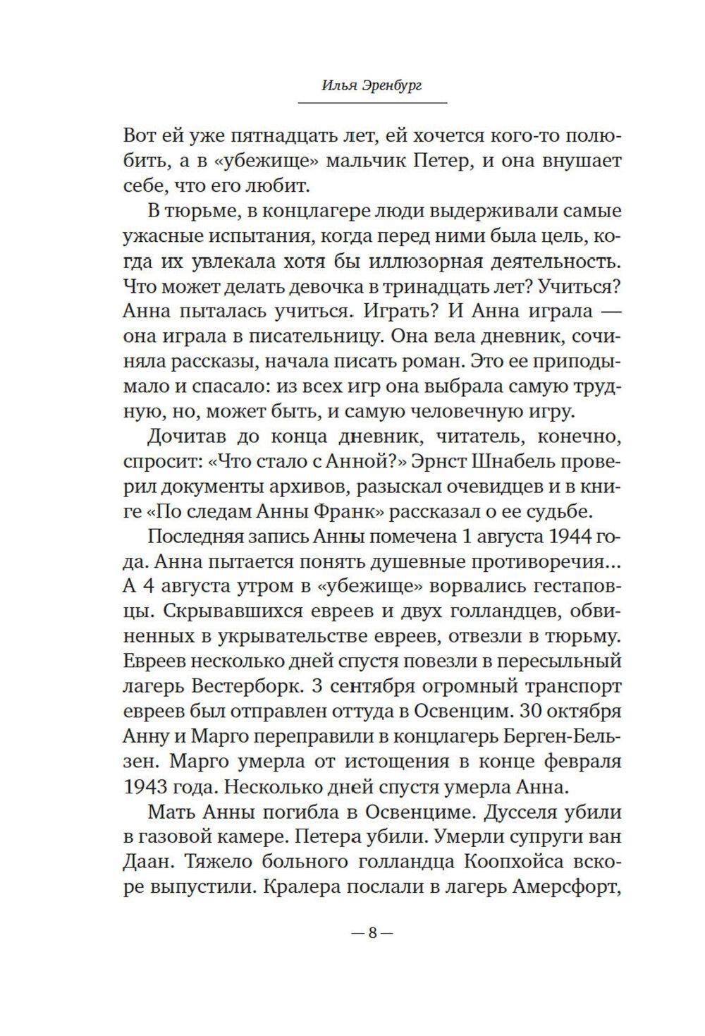 «Дневник Анны Франк» увидел свет в 1947 году в Нидерландах и разошелся по всему миру миллионными тиражами, книга была переведена на десятки языков. На русском языке «Дневник Анны Франк» впервые вышел в 1960 году, во времена «оттепели», и долгое время оставался для советских читателей одним из немногих доступных свидетельств холокоста. В течение двух лет (с июня 1942-го до августа 1944 года) несколько смелых голландцев прятали от нацистов восемь обреченных, среди которых была Анна Франк, а также ее старшая сестра и родители, - и еврейская девочка записывала в дневник события их жизни в «убежище». В предисловии к русскому изданию Илья Эренбург писал: «Это не роман прославленного писателя, это дневник тринадцатилетней девочки; но он потрясает читателя больше, чем мастерски написанные книги... Всем известно, что гитлеровцы убили шесть миллионов евреев, граждан двадцати государств, богатых и нищих, знаменитых и неизвестных... Они были отделены от мира стенами гетто, колючей проволокой концлагерей. Никто не знает, что они думали и чувствовали. За шесть миллионов говорит один голос - не мудреца, не поэта - обыкновенной девочки». В книге представлен «Дневник Анны Франк» в переводе Риты Райт-Ковалевой с предисловием Ильи Эренбурга.| Издательство | Азбука |