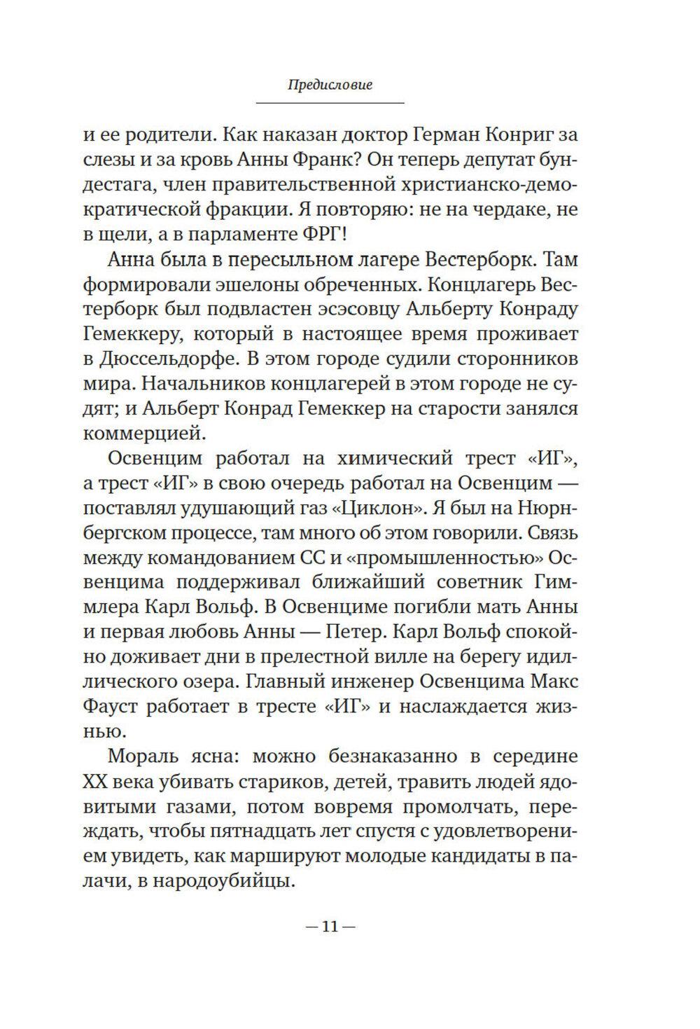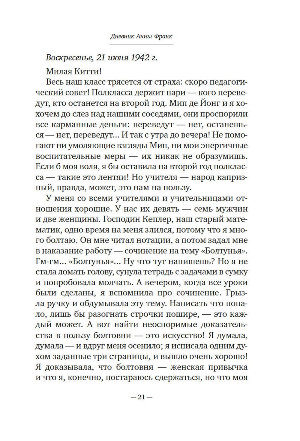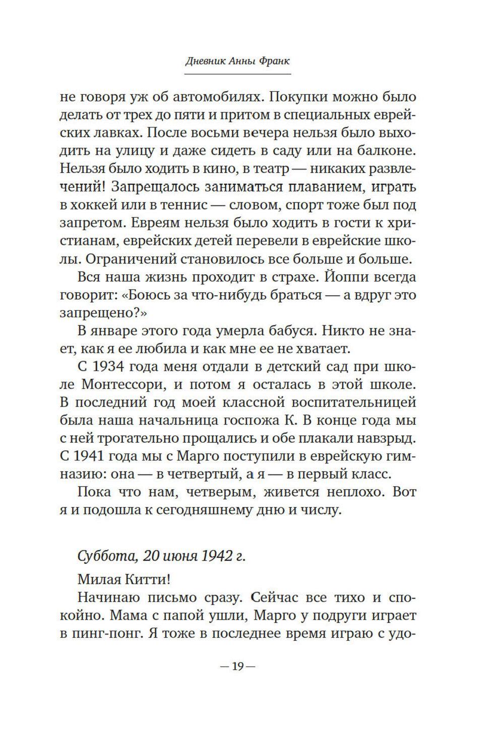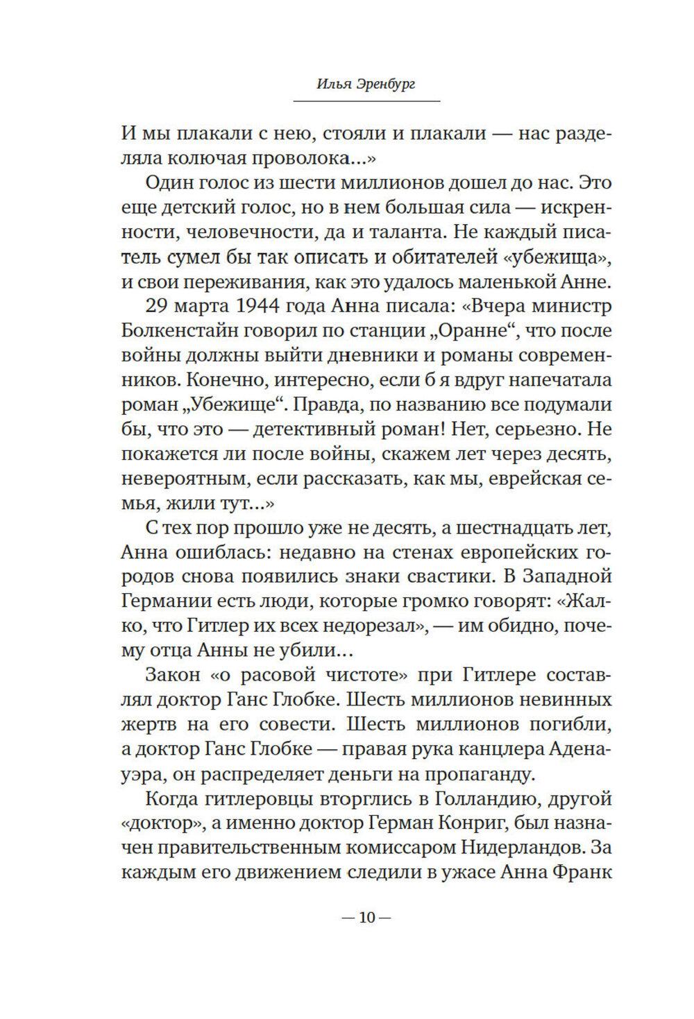 «Дневник Анны Франк» увидел свет в 1947 году в Нидерландах и разошелся по всему миру миллионными тиражами, книга была переведена на десятки языков. На русском языке «Дневник Анны Франк» впервые вышел в 1960 году, во времена «оттепели», и долгое время оставался для советских читателей одним из немногих доступных свидетельств холокоста. В течение двух лет (с июня 1942-го до августа 1944 года) несколько смелых голландцев прятали от нацистов восемь обреченных, среди которых была Анна Франк, а также ее старшая сестра и родители, - и еврейская девочка записывала в дневник события их жизни в «убежище». В предисловии к русскому изданию Илья Эренбург писал: «Это не роман прославленного писателя, это дневник тринадцатилетней девочки; но он потрясает читателя больше, чем мастерски написанные книги... Всем известно, что гитлеровцы убили шесть миллионов евреев, граждан двадцати государств, богатых и нищих, знаменитых и неизвестных... Они были отделены от мира стенами гетто, колючей проволокой концлагерей. Никто не знает, что они думали и чувствовали. За шесть миллионов говорит один голос - не мудреца, не поэта - обыкновенной девочки». В книге представлен «Дневник Анны Франк» в переводе Риты Райт-Ковалевой с предисловием Ильи Эренбурга.| Издательство | Азбука |